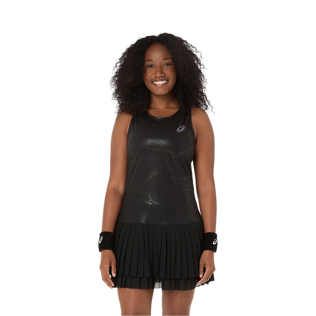 The design showcases an eye-catching iridescent ASICS logo that pairs beautifully with the shiny all-over dragonfly print, reflecting the grace and elegance of these creatures. The pleated double-layer mesh skirt mimics the delicate wings of the dragonfly, adding a dynamic flair to your movement on the court.