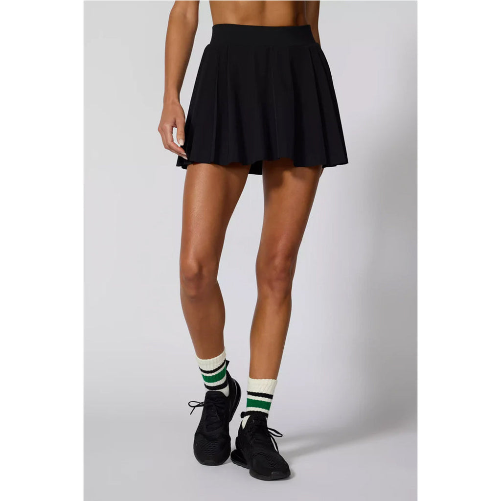 Make any outfit cute with this elegant black skort from MPG. Whether you’re hitting the tennis court, teeing off on the golf course, or just staying active, the Inspire High-Waisted Club Skort is your go-to for style and functionality. Pair it with our tennis tank or polo for a complete country club look! With fantastic shape recovery, 4-way stretch, and built-in shorts featuring multiple pockets (including a handy tennis ball pocket), this skort keeps you comfy and confident both on and off the court. Game on!