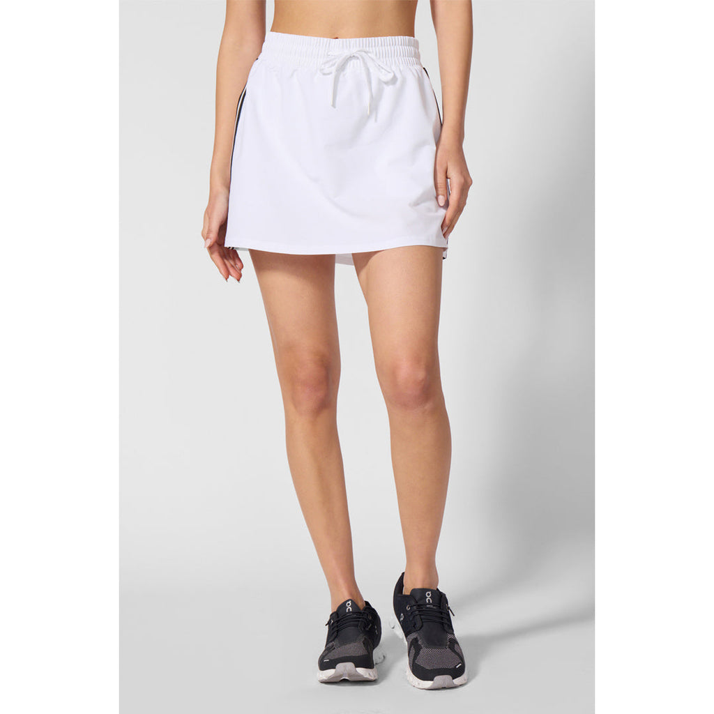 From early morning training sessions, on court battles, or spontaneous workouts on the go, this sleek and modern skort keeps up with your pace. Designed to pair effortlessly with your favorite workout tee or tank, it features a streamlined silhouette that flatters and performs. A comfortable drawcord waistband ensures a secure fit, while the built-in shorts liner keeps you covered and confident through every movement. Wherever your day takes you, this skort is ready.
