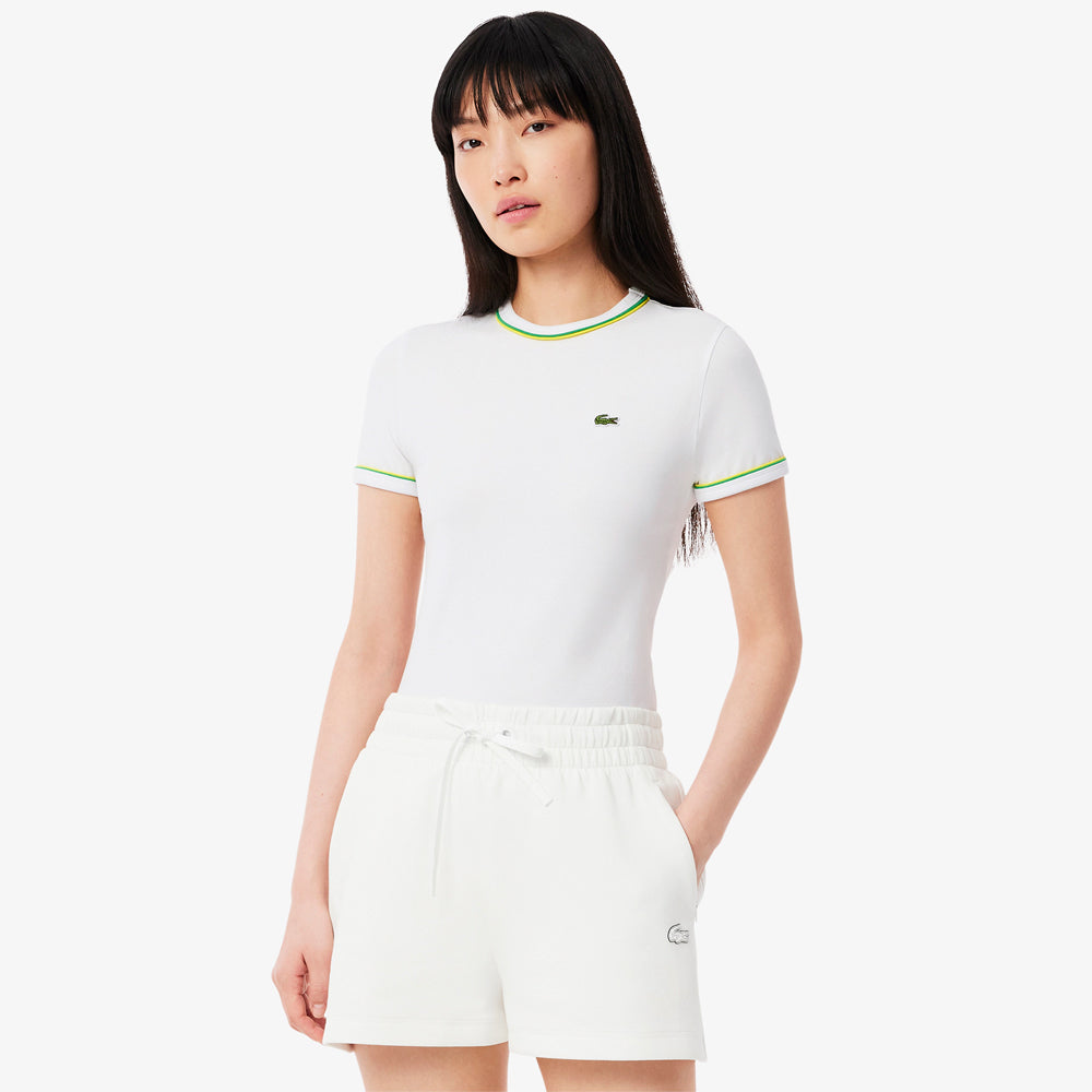 Great tennis wear that can double as street apparel. This T-shirt from Lacoste, sportswear creators since 1933, is a womenswear essential. Made from soft cotton jersey, with a flattering fitted cut and subtle contrast details, including iconic trim. An essential piece, finished with a signature crocodile.