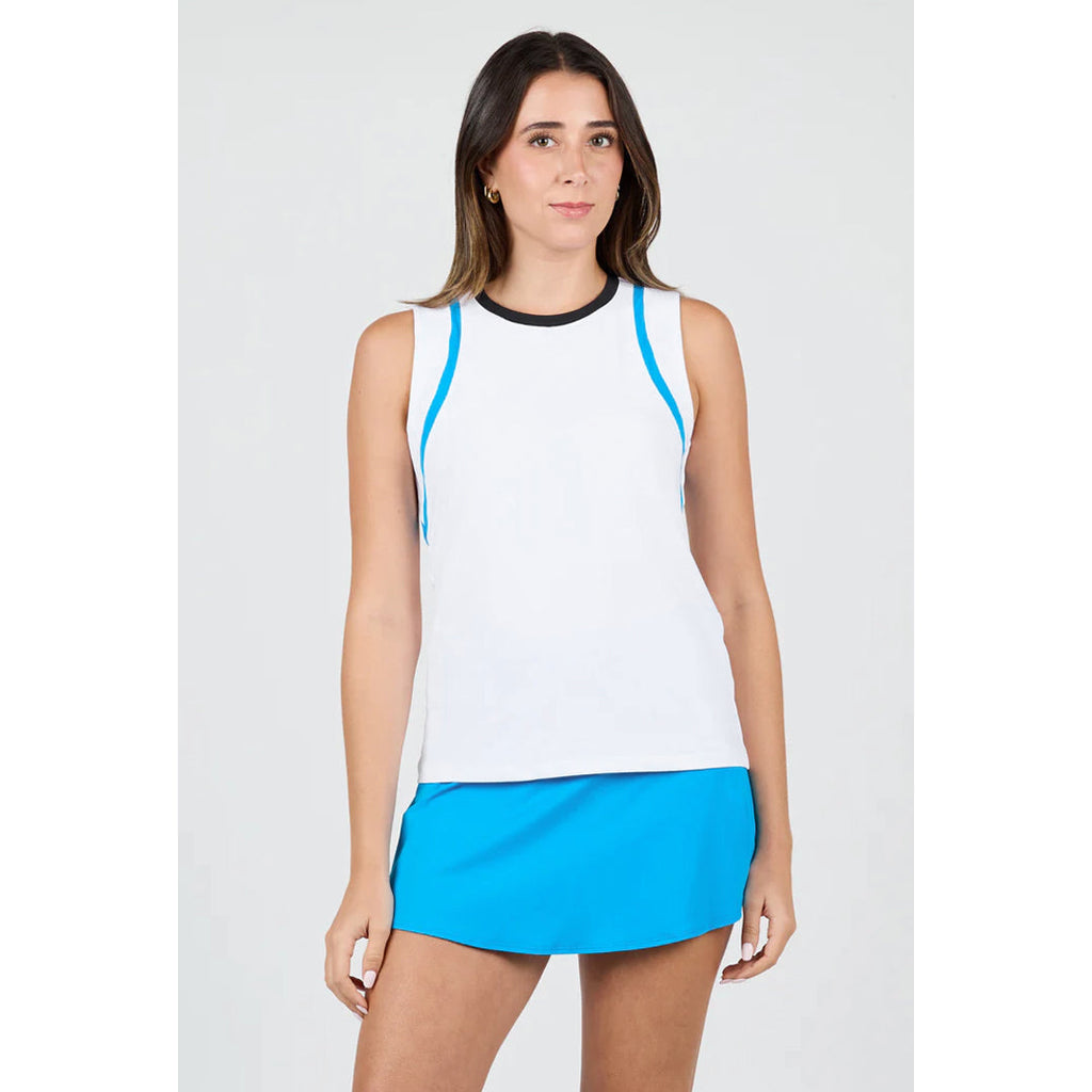 Make a fashion statement on court. This full tank combines bold contrast inserts with a streamlined silhouette for a dynamic, athletic look. Crafted in moisture-wicking stretch fabric, it delivers comfort, breathability, and standout style during every match.