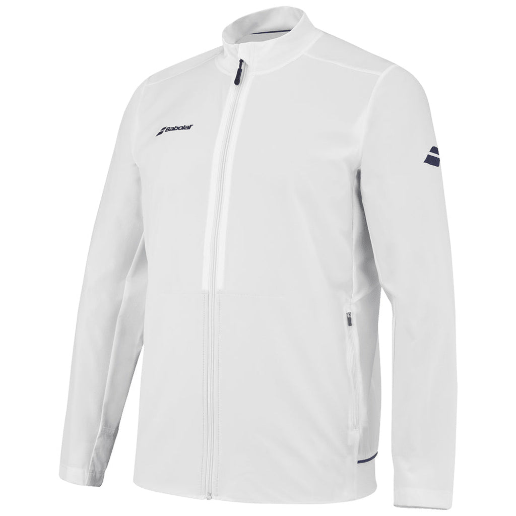Crisp white jacket to stay warm. The Play Homme Jacket for men is made from a blend of two new, highly stretchable fabrics: recycled polyester and elastane. For unrestricted movement when playing your sport. Elegant and refined, the Play Jacket is and will always remain timeless. A slight stand-up collar, straight cuffs and two zippered side pockets make the Play Jacket perfect for wearing on and off the court.