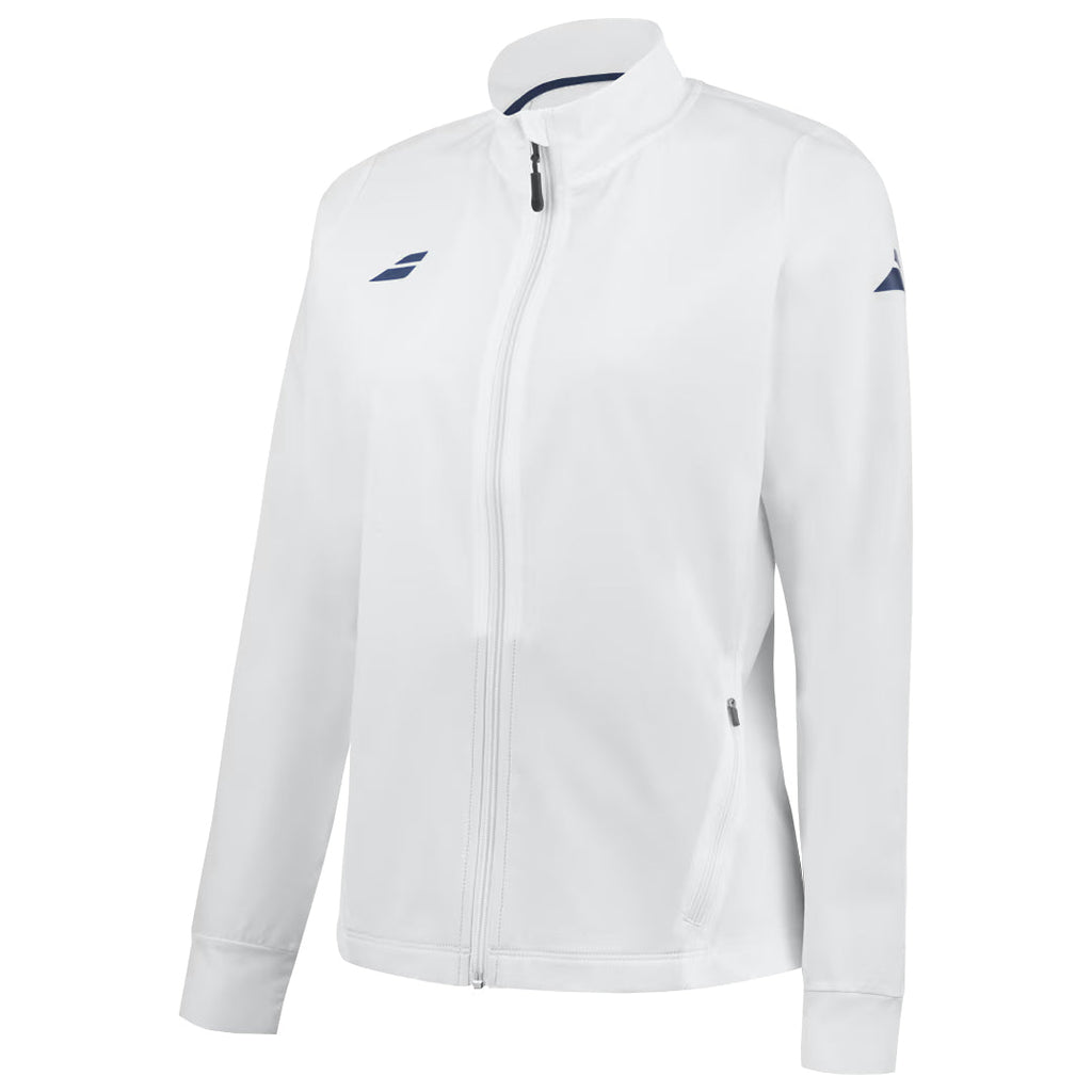 Warm jacket for the court of for a nice outdoor stroll. The Play Femme Jacket for women has been designed for comfort. Made from two highly stretchable fabrics, and partly from recycled polyester, skillfully blended with elastane. You'll also love the feminine styling. When playing your sport, and when you're on the move, you'll always enjoy maximum comfort. A stand-up collar with a protective zip placket, two zippered pockets for your keys, and you're ready to go. The Play Jacket is perfect for wearing on and off the court.