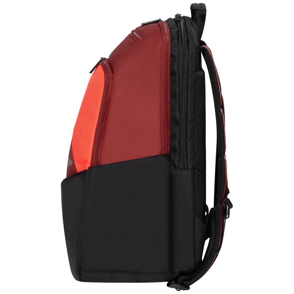 Stylish backpack for tennis players on the go. Carry everything you need in style. Large main compartment for clothes and shoes. Rear compartment to hold up to two rackets. Two front zipped compartments, one with integral smaller pockets for accessories. Side pocket to securely hold a water bottle or tennis ball tube. Ergonomic shoulder straps for improved comfort.
