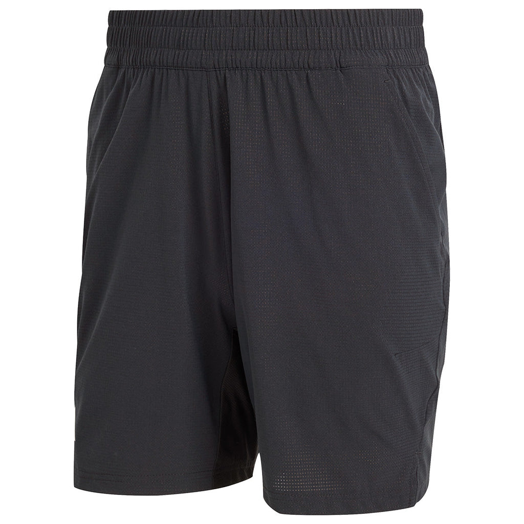 Classic black adidas tennis short in 9". Step onto the tennis court ready to play your best in these shorts. Part of the adidas Gameset collection, they'll support your every move with their stretchy fabric and ergonomic construction. CLIMACOOL wicks and disperses sweat for cool, dry and distraction-free performance.