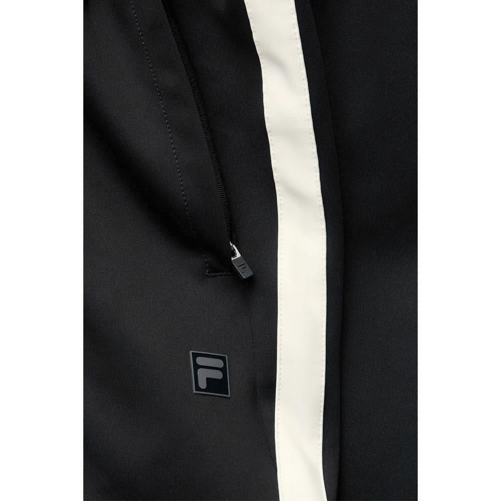 Comfortable athletic pants in black. Achieve effortless style and unmatched performance, these pants feature a chic contrast side panel and Fila's signature F-Box logo. The tech knit fabric ensures flexibility and comfort, while the secure front pockets with lock-down zippers keep your essentials safe. Perfect for both active and relaxed moments, these pants are designed to meet the demands of anything your day holds.