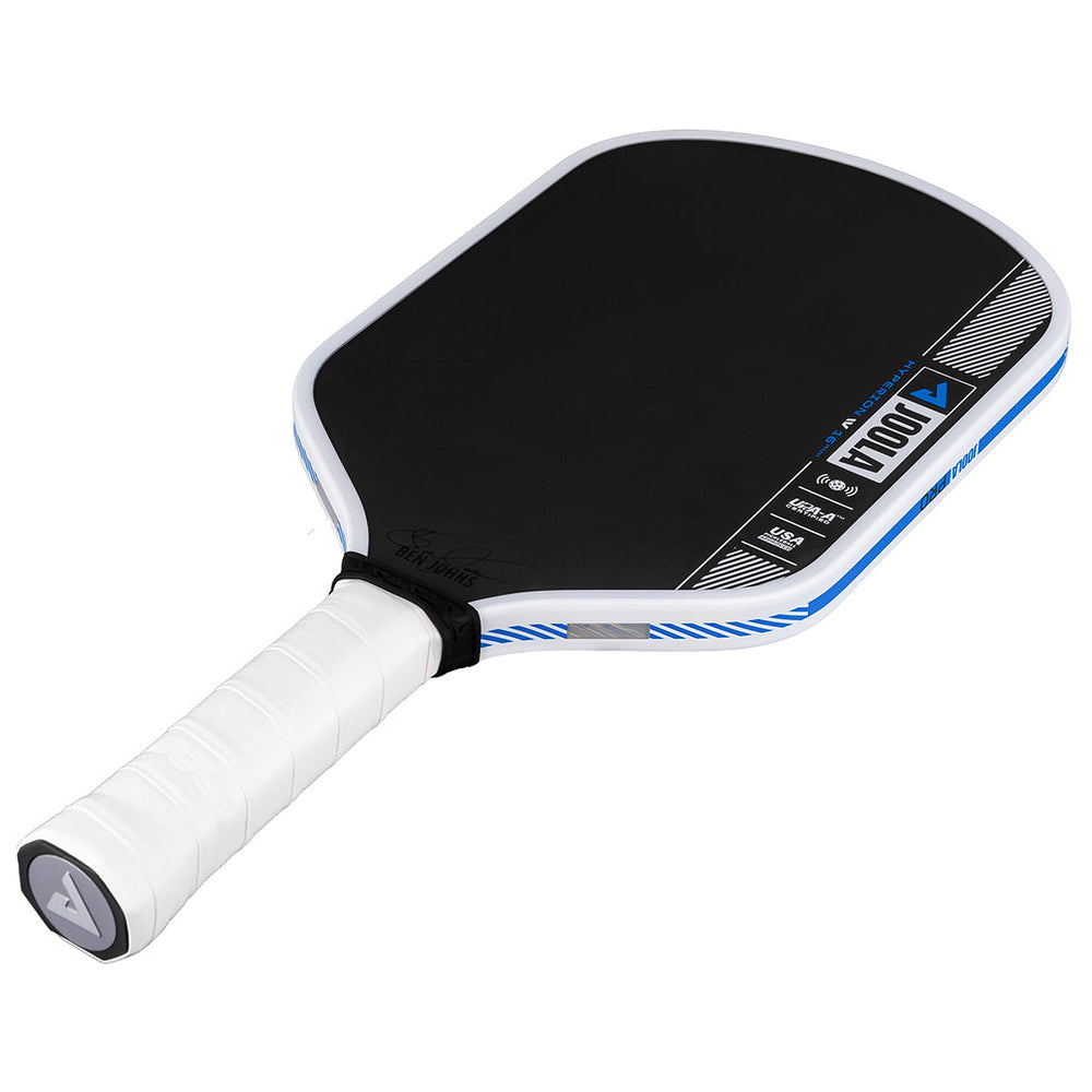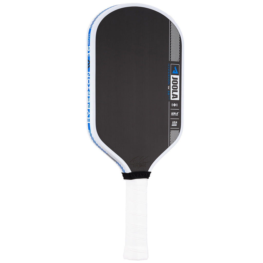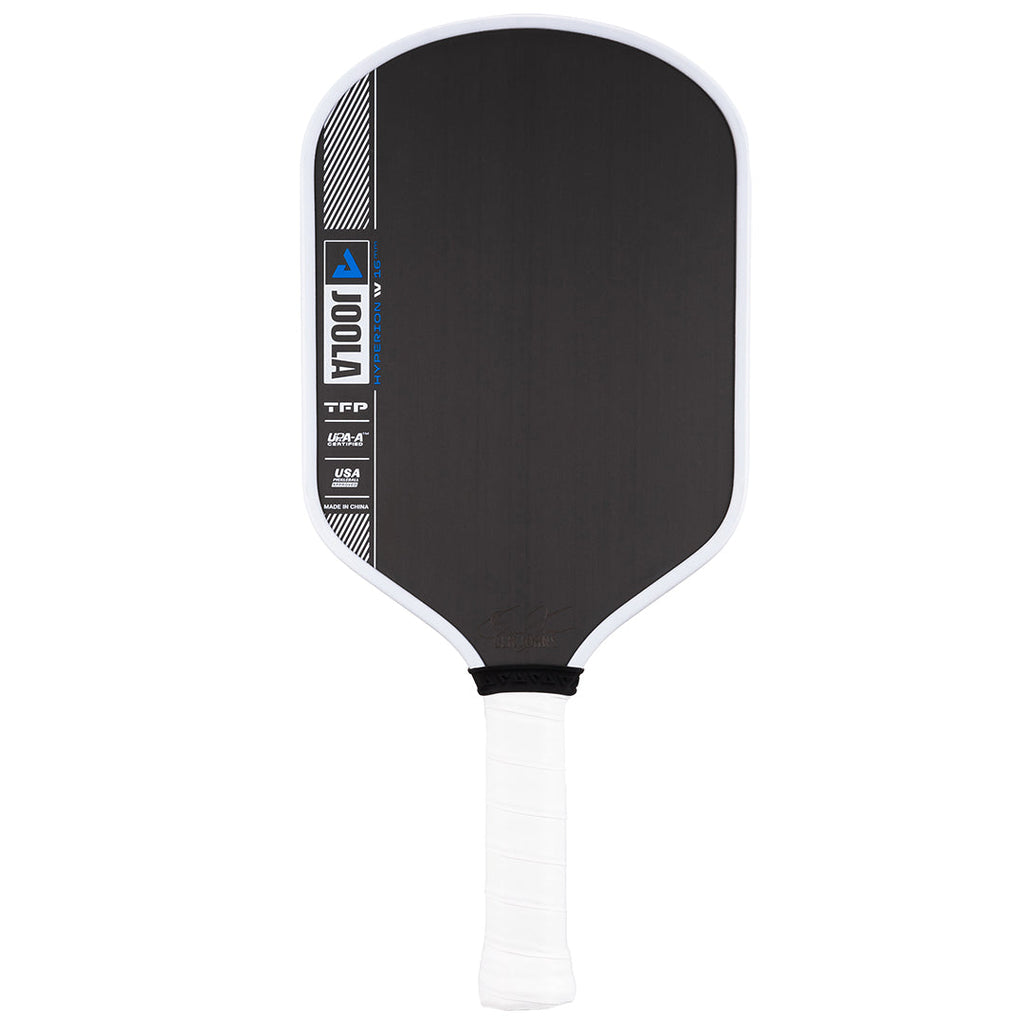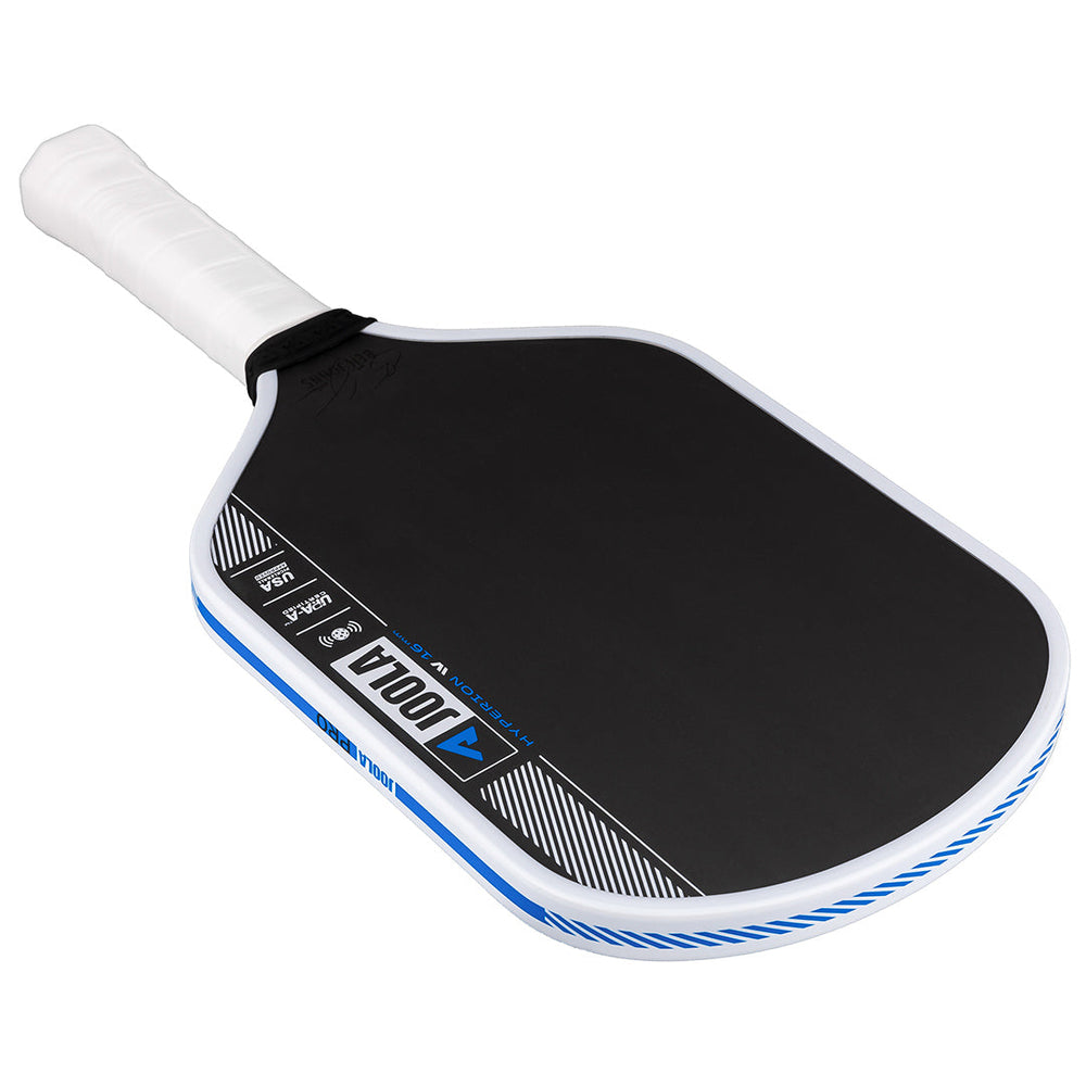 Swing fast and blister those shots past your opponent with a 16mm frame. The aerodynamic shape of the Hyperion Pro IV pickleball paddle cuts through the air faster for less drag time and increased swing speed. Now with JOOLA’s patent-pending TechFlex Power (TFP) technology, the weight has been optimized throughout the paddle, reducing fatigue, and offering the confidence you need to understand your unique play style. By combining TFP with the innovative Propulsion Core, Pro IV gives you power with unparalleled forgiveness to help you put every shot in play. The paddle that started it all features the longest handle in Joola’s lineup, providing players with enhanced leverage to achieve the perfect balance of spin and control. All Pro IV paddles are USAP PBCoR 43 certified and UPA-A pro certified.
