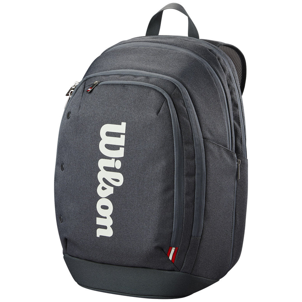 Everyday, sophisticated bag for tennis or life. Packing for the day or a weekend away, Wilson's latest Tour Backpack lets you travel light but with the functionality of a seasoned pro. Featuring a design inspired by Wilson's 100+ year legacy, it's been updated with a modern, dynamic silhouette, plus improved shoulder straps for better comfort. This sleek, compact pack can hold one or two racquets, with locking zips to keep them secure. There's a dedicated laptop sleeve and an external zip pocket for smaller personal items and valuables.