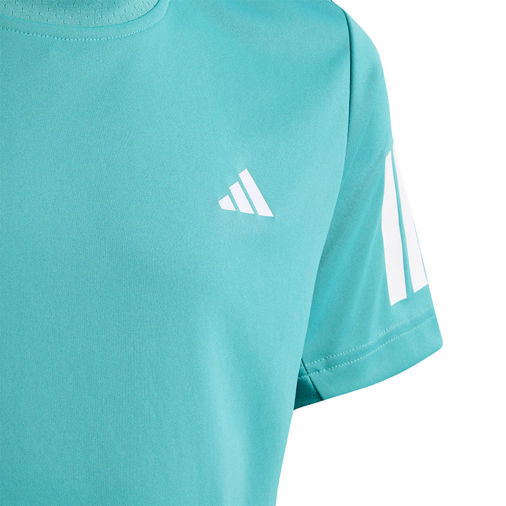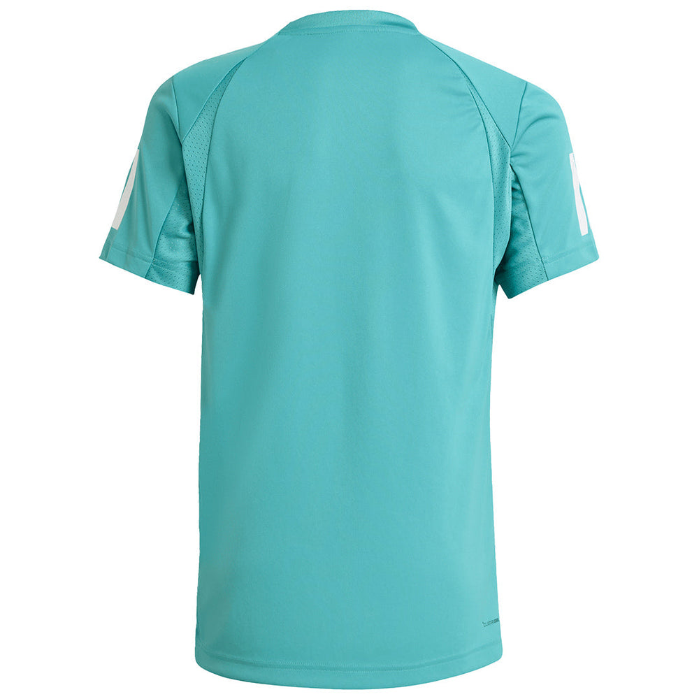 Teal t shirt perfect for kids. The Club tennis collection ensures you have all the right gear when you hit the court. Perfect for action-packed matches, this juniors' tee is designed to enhance your overhead game thanks to shoulder-freeing FreeLift. CLIMACOOL wicks and disperses sweat for cool, dry and distraction-free performance. Floating 3-Stripes on the sleeves add some adidas style.