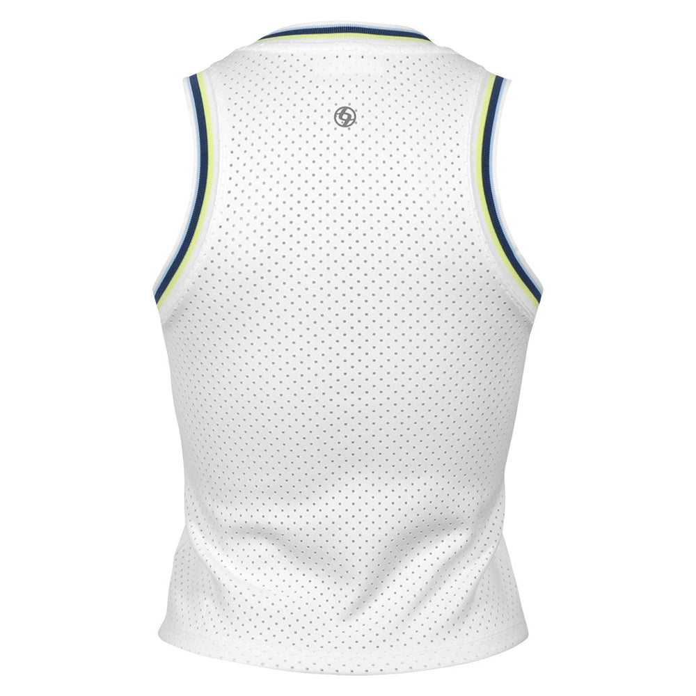 Stylish, breathable tank, great for sports. This cropped tank top features striped rib detailing on the armholes and neckline for a sporty edge. The full back panel is made from laser-cut perforated fabric for maximum breathability, while the 19" length and fitted silhouette create a sleek, modern look.