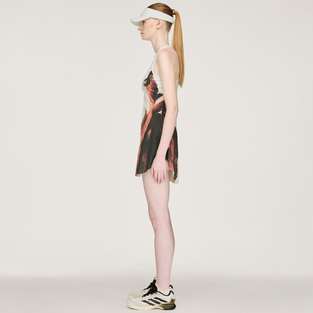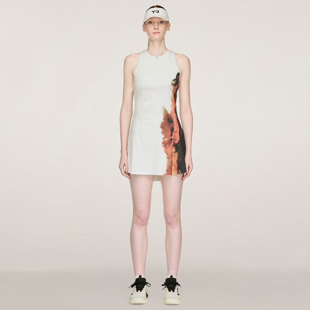 Cool design on a great adidas tennis dress. Style and performance. A perfect match. A collaboration between Y-3 and adidas, this dress is part of a collection built for North America's most prestigious tennis tournament. CLIMACOOL wicks and disperses sweat for cool, dry and distraction-free performance. Cut for a slim fit, the stretchy interlock fabric flexes with your every movement on court.