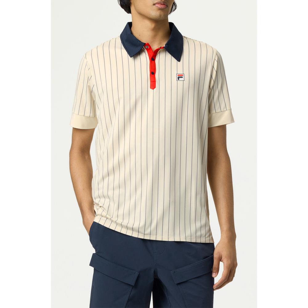 Fila Men's Casa Performance Iconic BB1 Polo - Angora/Fila Navy Pinstripe