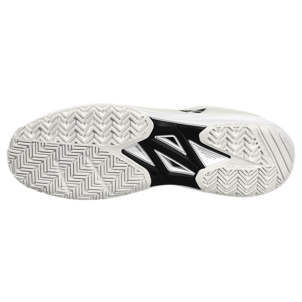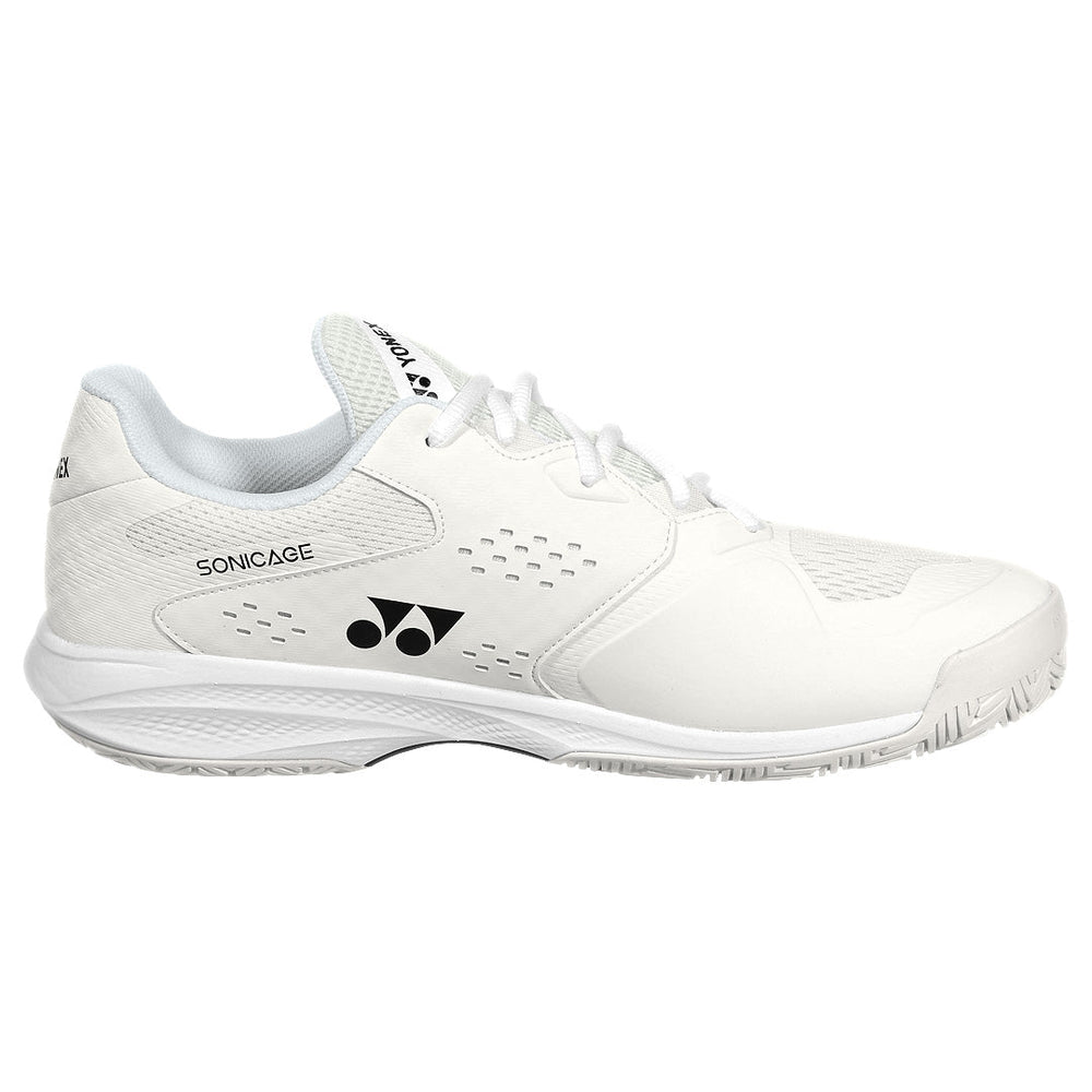 Classic white tennis shoe with the impressive Power Cushion technology. The Yonex Men's Power Cushion Sonicage is a lightweight and comfortable tennis shoe, ideal for recreational and intermediate players who need reliable support for movement on all areas of the court. It features the Power Cushion+ midsole, which absorbs shock and reverses impact energy for smooth transitions. The FlexQuip Durable Skin evenly distributes natural pressure from on-court movements while providing extra durability during aggressive play. A seamless tongue construction ensures a smooth, comfortable fit, and the TPU shank extends into the forefoot for faster, more stable footwork. The shoe also incorporates a Power Graphite plate to support the arch and reduce stress on the hips and knees during long hours of play. The Round Sole design offers all-around support for quick and smooth footwork, ensuring maximum energy transfer.