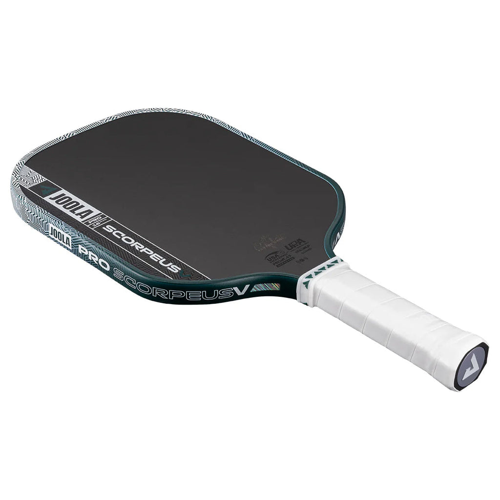 Snazzy paddle with a wide face for a more consistent feel. A defensive player’s dream paddle, the Scorpeus Pro V is made for those in search of control and stability. It's our widest and most forgiving paddle shape, designed for consistency even when timing or contact isn’t perfect. And as the shortest shape in the Pro V lineup, it provides unmatched stability during high-velocity kitchen battles.