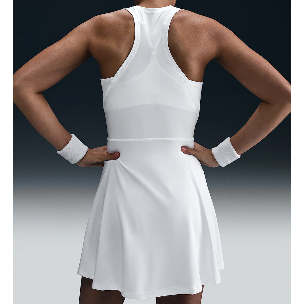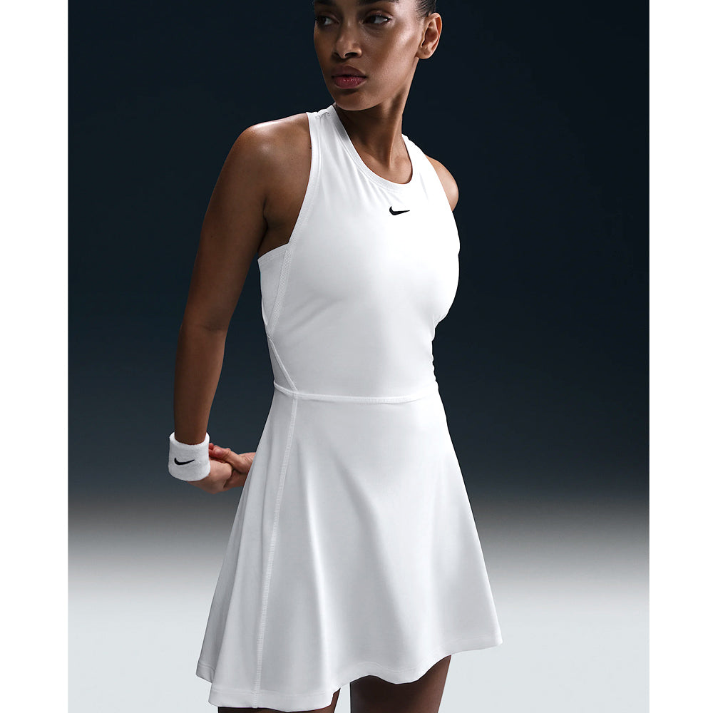 Sporty cool and ready for the court. Made from super-smooth, ultra-stretchy fabric that dries quickly, this Victory dress makes it easy to focus on your swing. Ribbed panels under the arms stretch through your full range of motion. Nike Dri-FIT technology moves sweat away from your skin for quicker evaporation, helping you stay dry and comfortable.
