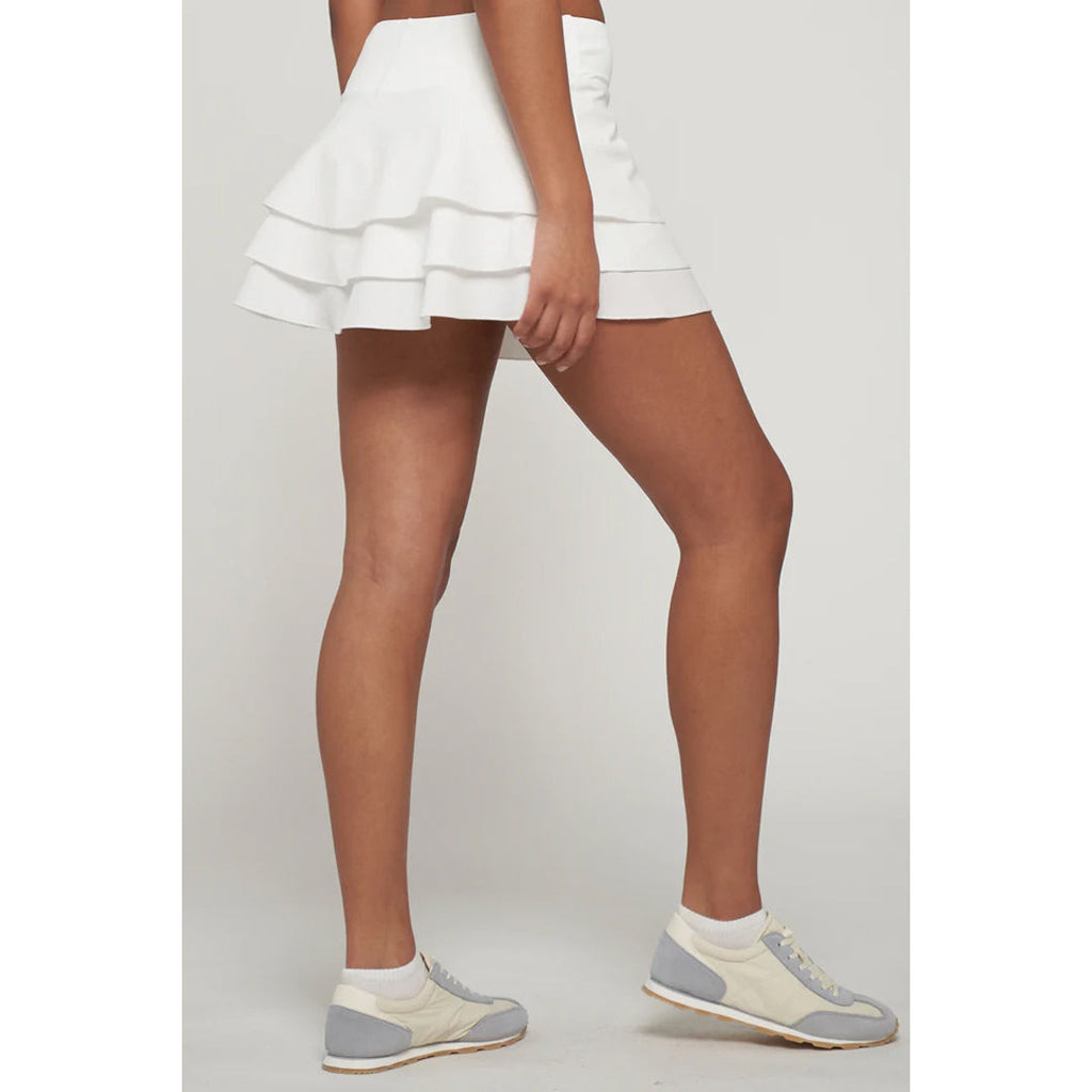 Classic white and very flattering. This 13" tennis skort brings playful movement and all-day comfort with its lightweight, triple-tiered design. A long-time favourite for its flattering fit, it features a smooth 3" front waistband and a sculpting 4" back panel that enhances your shape. Stretch woven fabric keeps you light on your feet, while tonal knit undershorts offer secure support.