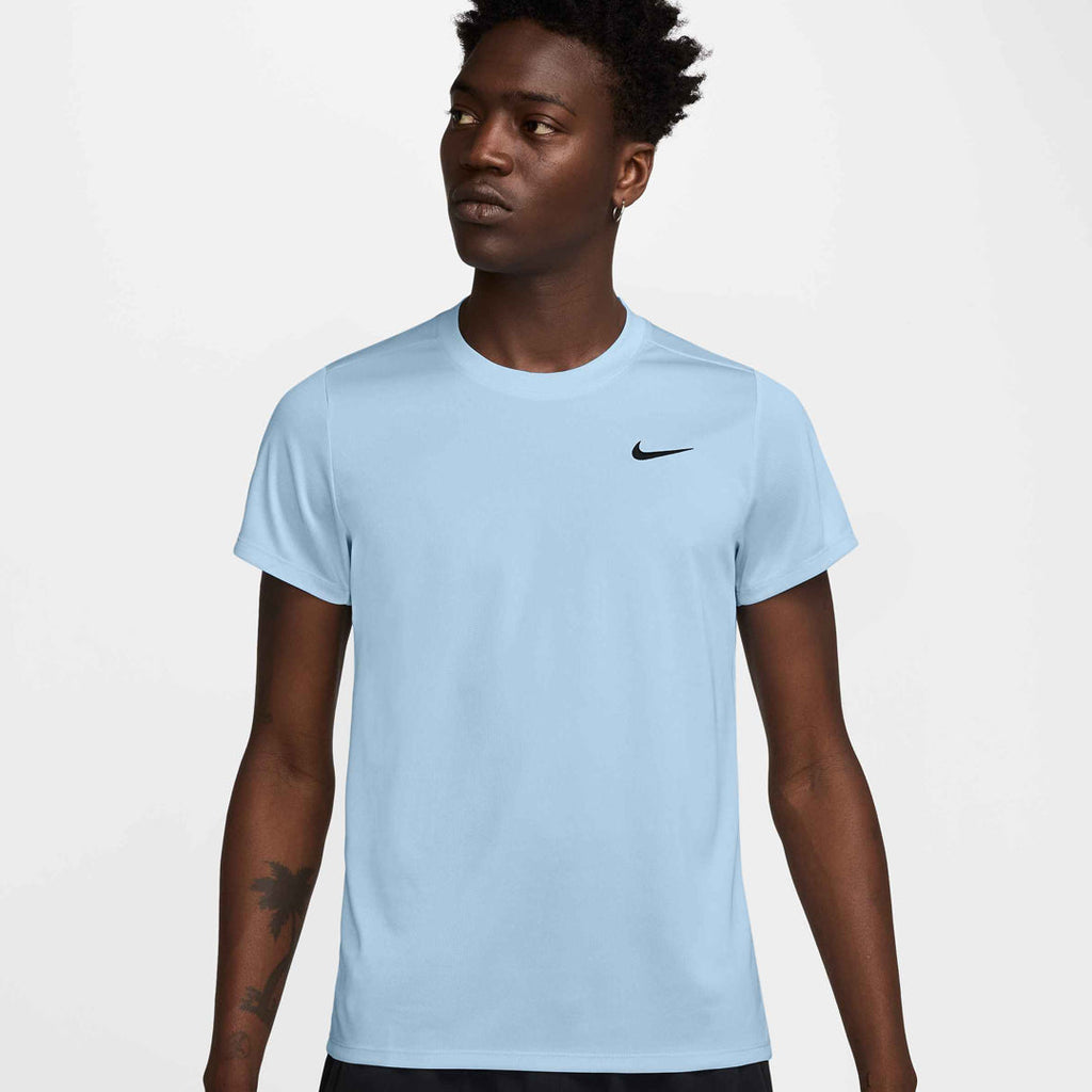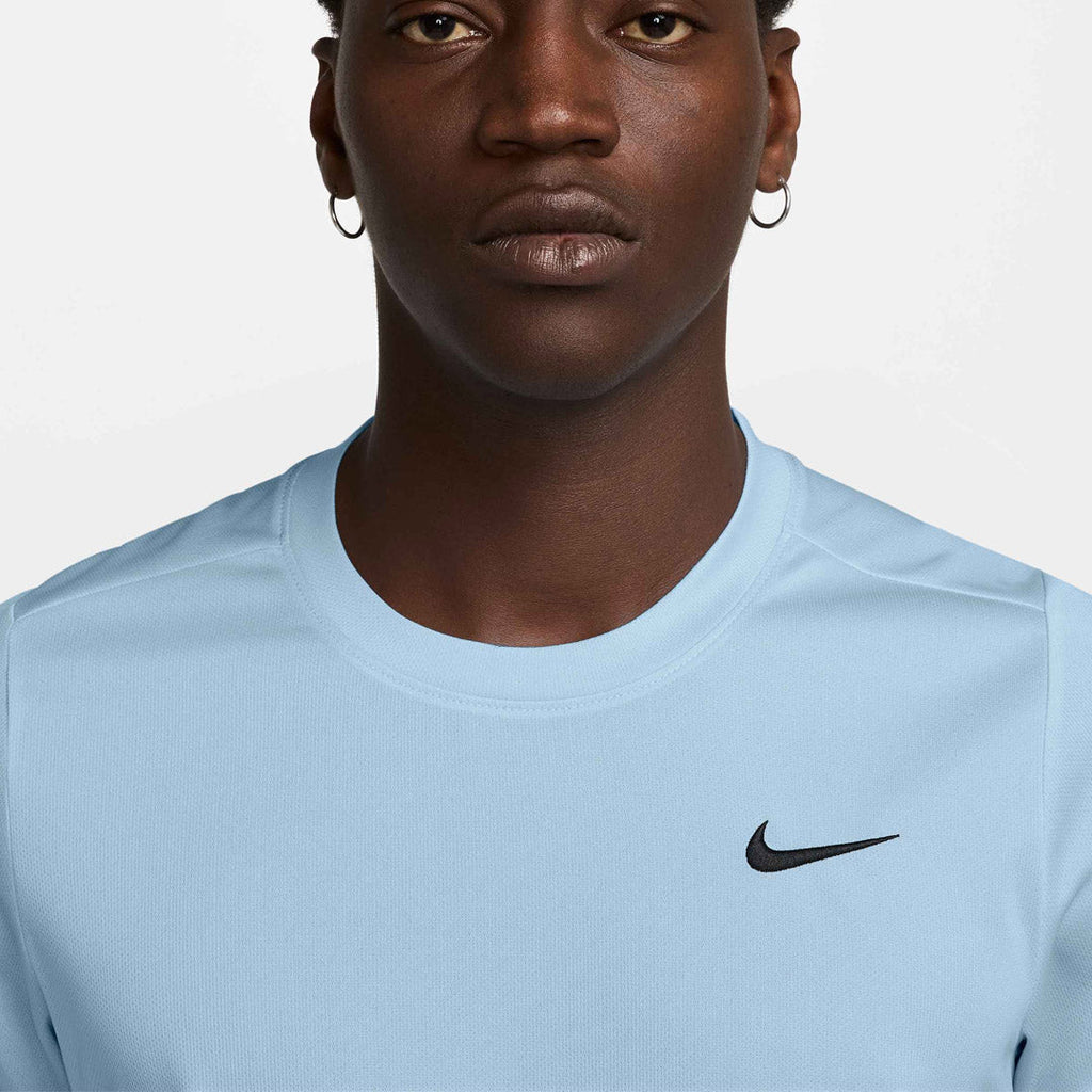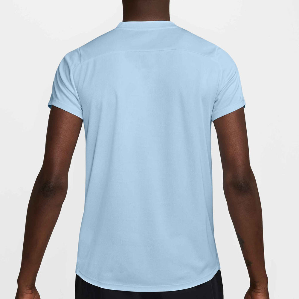 Light, cool and classic in celestine blue. Breathable, stretchy and sweat-wicking, this classic-fit Victory top is ready to perform. The back shoulder seam placement is designed to help you stay extra mobile while you rotate and drive through the ball.