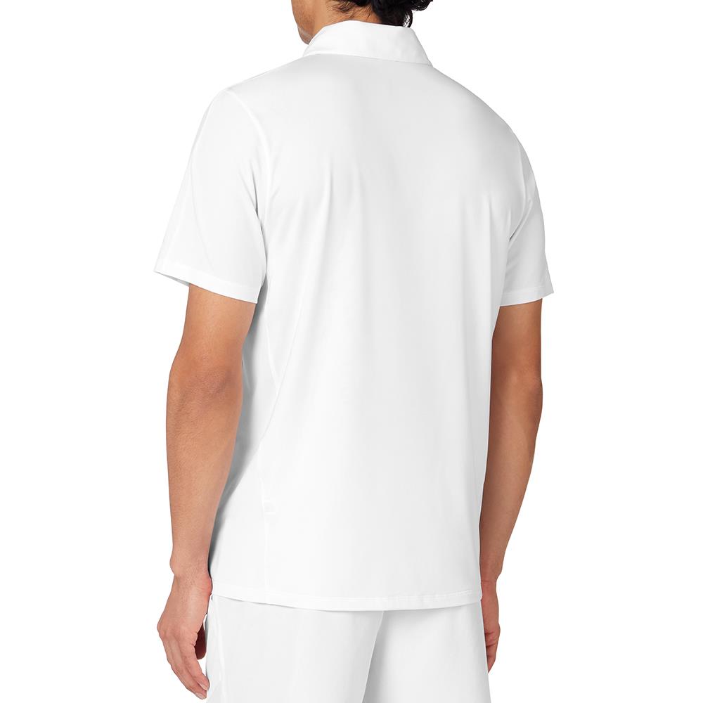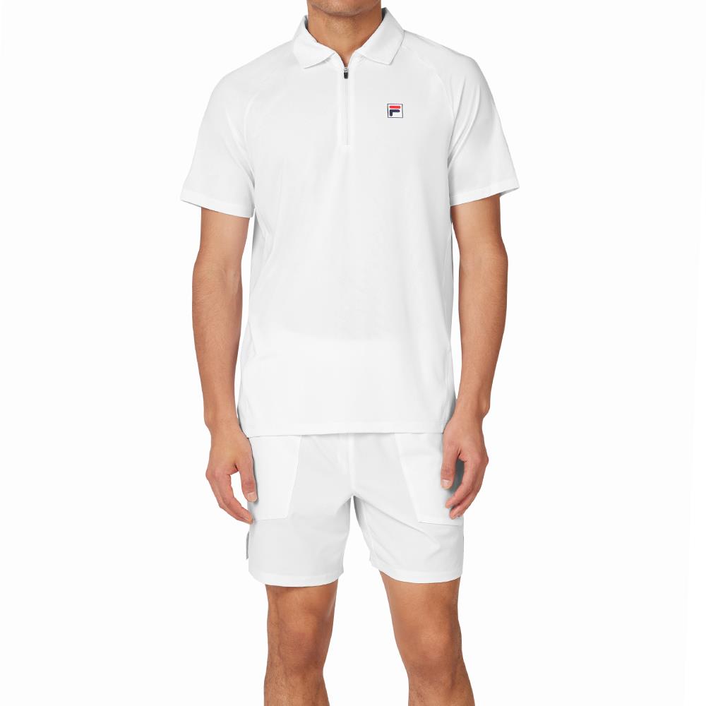 This stylish piece features a classic collar and is adorned with the iconic F-box logo at the wearer's left chest, enhancing its timeless appeal. A high-density FILA logo runs along the wearer's back right side seam. The polo is equipped with a front zipper placket with a lock-down puller for secure and easy wear. The tearaway main label ensures convenience and a smooth feel against the skin. Crafted from 84% recycled polyester and 16% spandex, this garment combines sustainability with flexibility and comfort, making it an excellent choice for both active and casual wear.