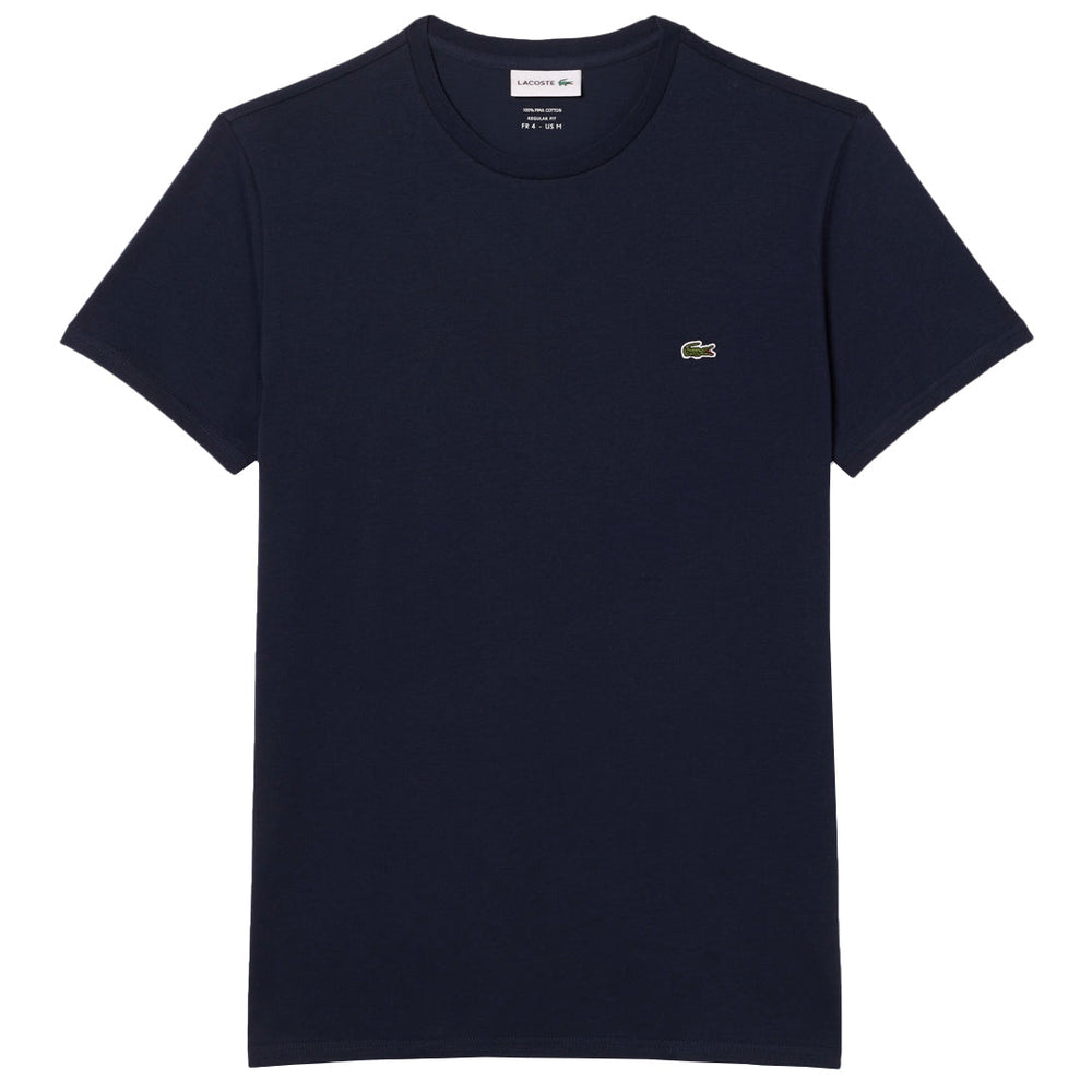 Classic Lacoste tee in navy blue. Lacoste, sportswear experts since 1933, is committed to using the best quality fabrics. This versatile, essential tee is cut from a premium cotton, grown in Peru, that’s particularly fine, light, hard-wearing and has a subtle sheen.