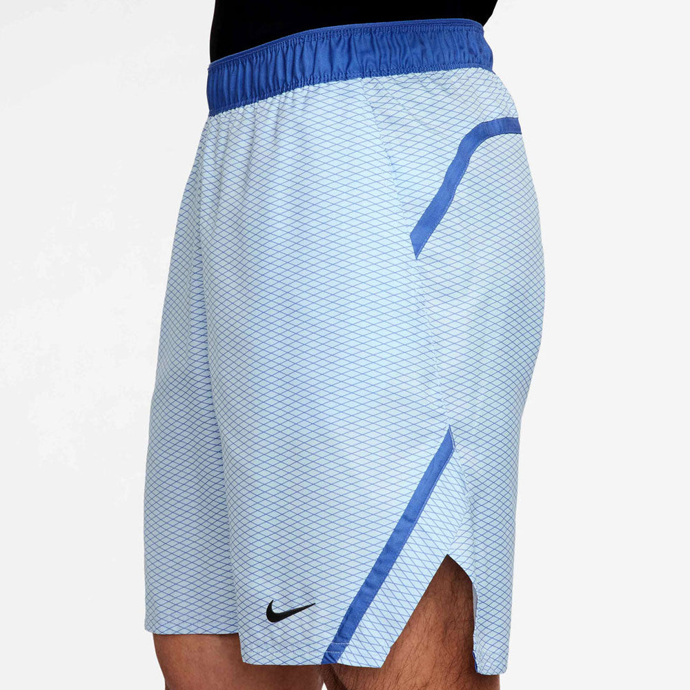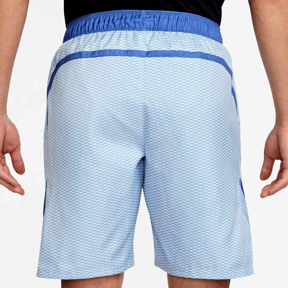 Strike them out on court in celestine aqua with interesting print shorts. Always match ready, these 7" tennis shorts are made with a lightweight woven fabric and sweat-wicking Dri-FIT technology to help keep you cool when the match heats up.