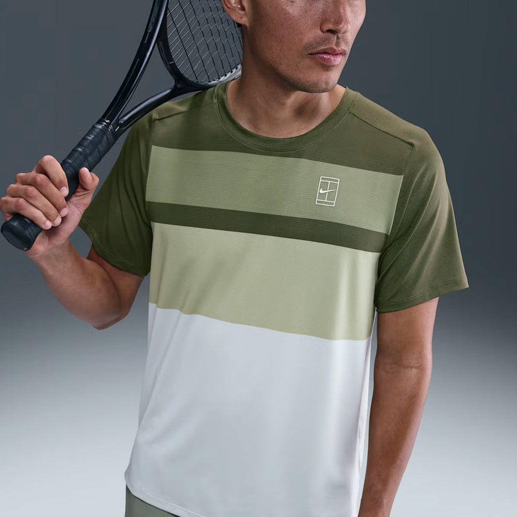 Style with the sport in mind. This slim-fit Advantage top lets you take the court with sweat-wicking, 4-way stretch material. The shoulder seam placement is designed to help you stay extra mobile while you rotate and drive through the ball.
