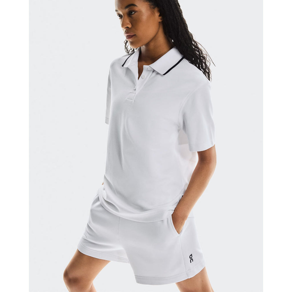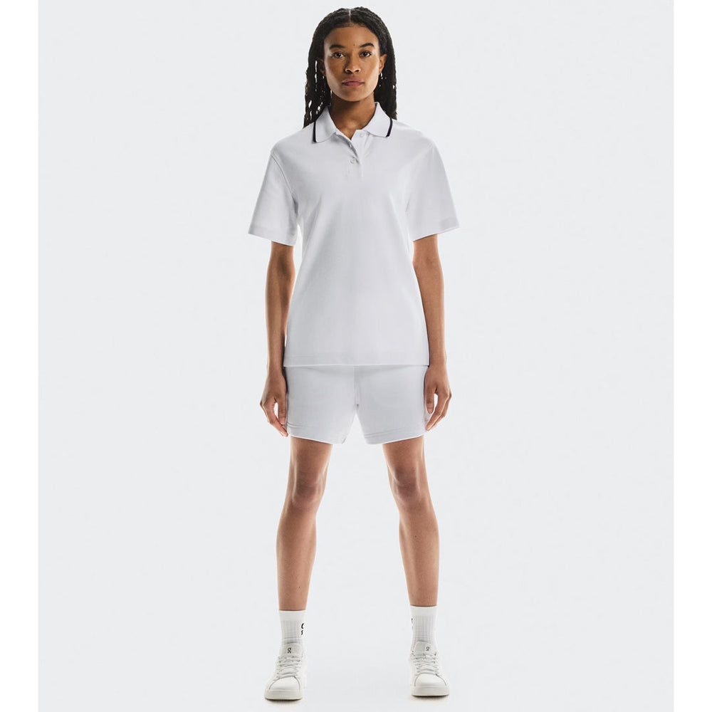 Classic white polo, oozing tennis style. A tennis-inspired polo shirt done the On way. Swiss engineered with quiet branding and super-soft piqué knit fabric.