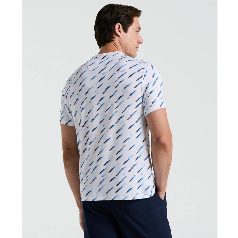 Sleek white with blue colour on a great, breathable tee. Ace your tennis performance with this lightweight, stretchy tee made from recycled materials. The single knit fabrication ensures flexibility and comfort, while moisture-wicking technology keeps you cool and dry. Game, set, match!