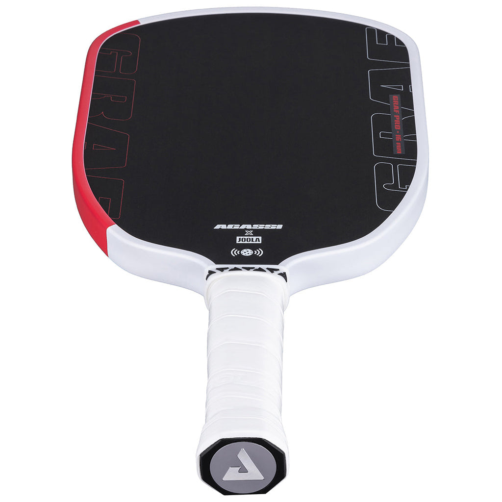 An elite racquet for the toughest players. Play with confidence and purpose with the JOOLA Graf Pro. Designed for players who have a pro mentality, the Graf Shape extends the sweet spot to the outer edges and bottom corners, allowing you to place pin-point accurate shots just out of the reach of your opponent. Just below the surface, Graf Pro features Tech Flex Power (TFP) technology to help evenly distribute weight throughout for smooth handling and forgiveness on every swing. Let the paddle do the work and you can handle the rest. Make the Graf Pro yours.