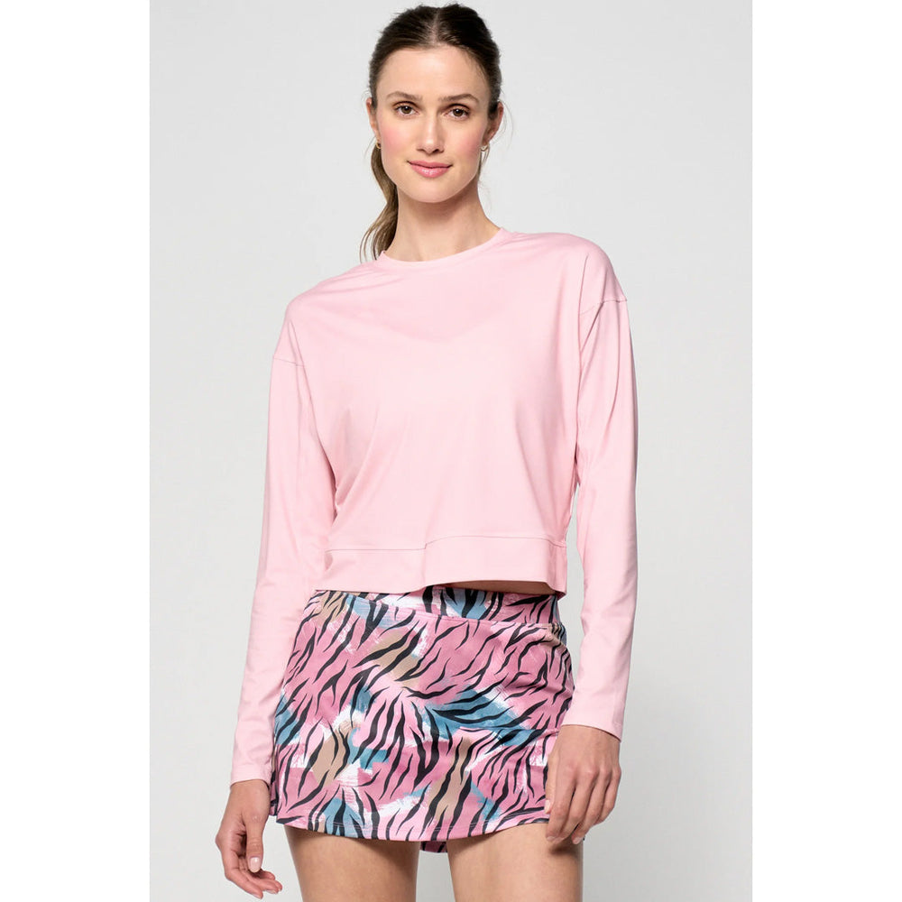 Stylish and stretchy for workouts or tennis. The LIJA Rally Top delivers a fresh take on a key layer piece for on-court style with its lightweight, breathable striped performance fabric and subtle batwing silhouette. A classic crew neckline keeps the look clean and versatile, while the 21" relaxed fit offers easy movement and a flattering drape. Perfect for layering or wearing solo, the Drift Rally Top transitions seamlessly from match day to everyday, giving you polished performance with modern ease.