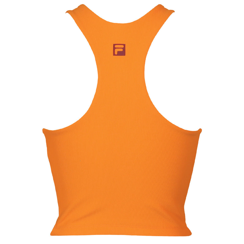 Eye popping orange colour on a top that helps you stay comfy and supported. Stay cool and stylish on the court with this longline racerback bra top, designed for optimal support and performance. The ribbed knit fabric offers a stretchy, body-hugging fit, while the racerback design and scoop-neck cut allow for a full range of motion. With a contrasting F-Box logo, this top is perfect for high-intensity matches and everyday training.
