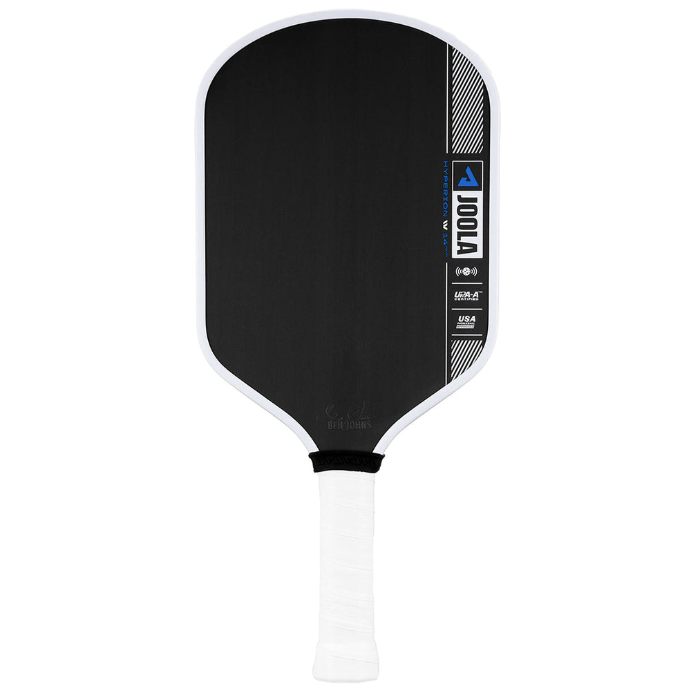 Swing fast and blister those shots past your opponent. The aerodynamic shape of the Hyperion Pro IV pickleball paddle cuts through the air faster for less drag time and increased swing speed. Now with JOOLA’s patent-pending TechFlex Power (TFP) technology, the weight has been optimized throughout the paddle, reducing fatigue, and offering the confidence you need to understand your unique play style. By combining TFP with the innovative Propulsion Core, Pro IV gives you power with unparalleled forgiveness to help you put every shot in play. The paddle that started it all features the longest handle in Joola’s lineup, providing players with enhanced leverage to achieve the perfect balance of spin and control. All Pro IV paddles are USAP PBCoR 43 certified and UPA-A pro certified.