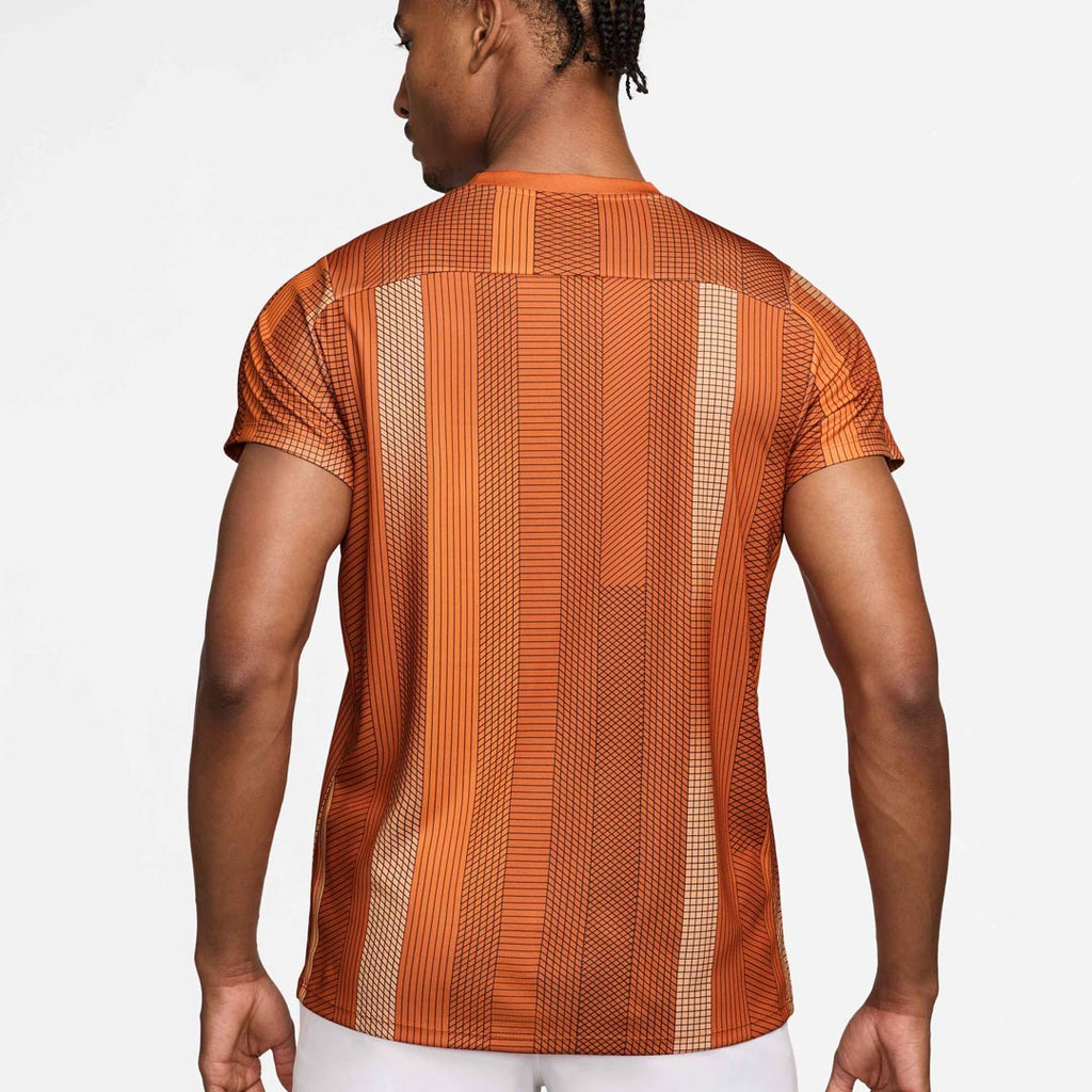 Unique design in striking campfire orange. Breathable, stretchy and sweat-wicking, the Victory top is always ready to hit the court. The back shoulder seam placement is designed to stay out of the way while you rotate and drive through the ball.