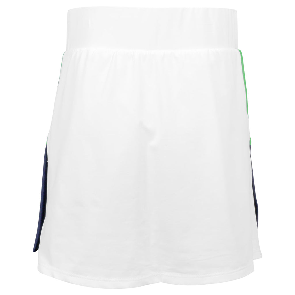 Fun and athletic skort for girls. Simple and sporty with a fresh twist, the Green Spirit Girls’ Tennis Skort is perfect for young athletes who love to move. Designed in crisp White with cool Zen Green and Navy side accents, this skort brings energy and fun to every swing. The comfy flat waistband stays in place, while the slightly flared shape gives her room to move and play with ease. Built-in white shorties provide extra coverage and comfort, whether she’s practicing serves or playing a match. Made with Sofibella’s Sofi-Premier performance fabric, this skort also offers 50+ UPF sun protection, four-way stretch, moisture-wicking, quick-dry technology, and resistance to pilling—keeping her cool, confident, and ready for anything on or off the court.