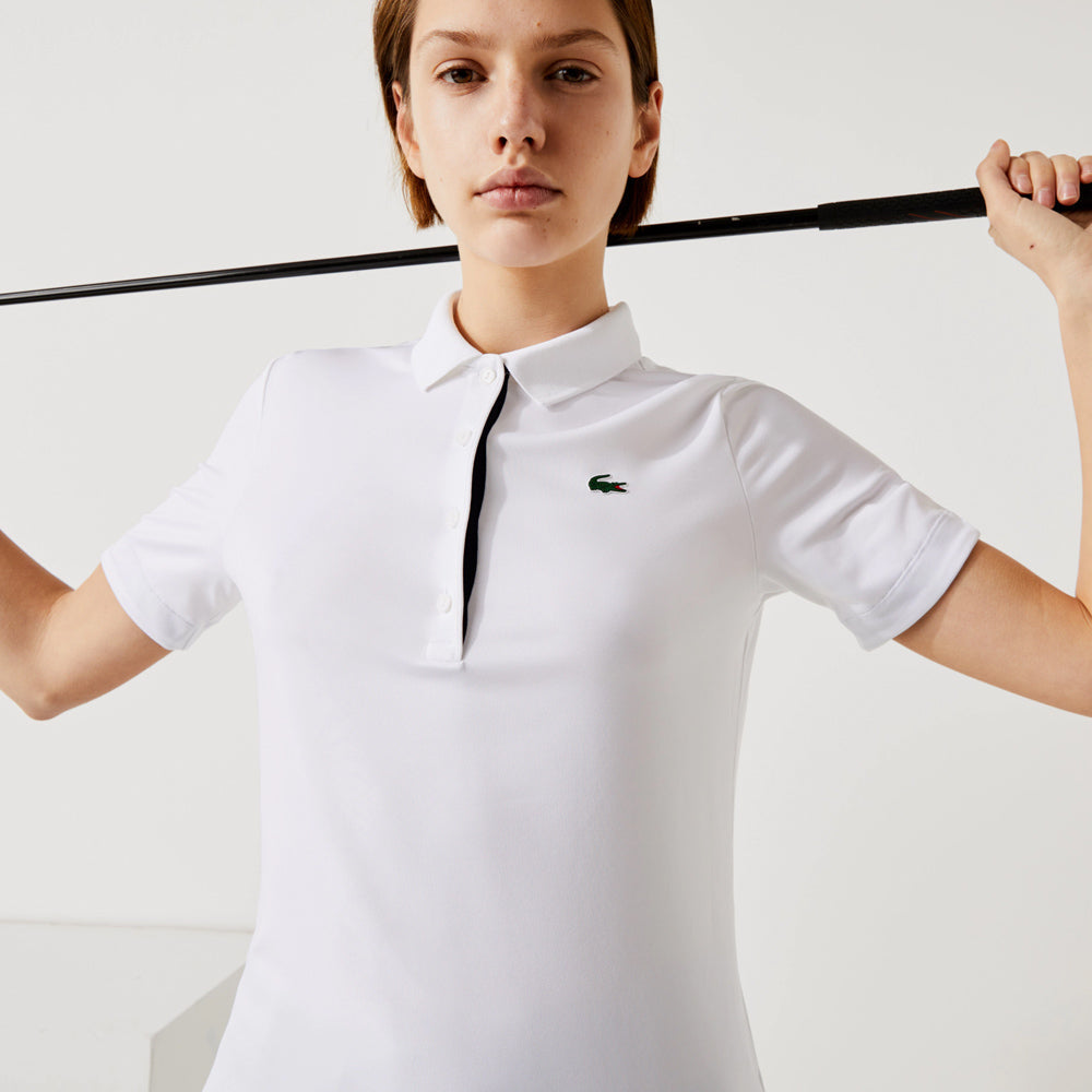 Great and sophisticated polo, in white and navy. This polo shirt, tried and tested by Lacoste players, is designed for intensive golf sessions. Made from stretch jersey for maximum freedom of movement, with Ultra Dry technology and an anti-UV finish to keep you comfortable and protected. Elegant details, such as the contrast tab, ensure you stay stylish on the green.