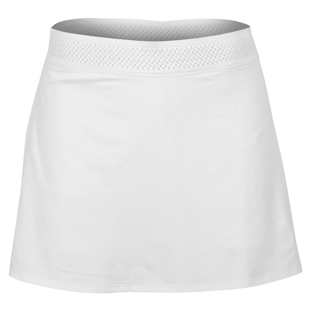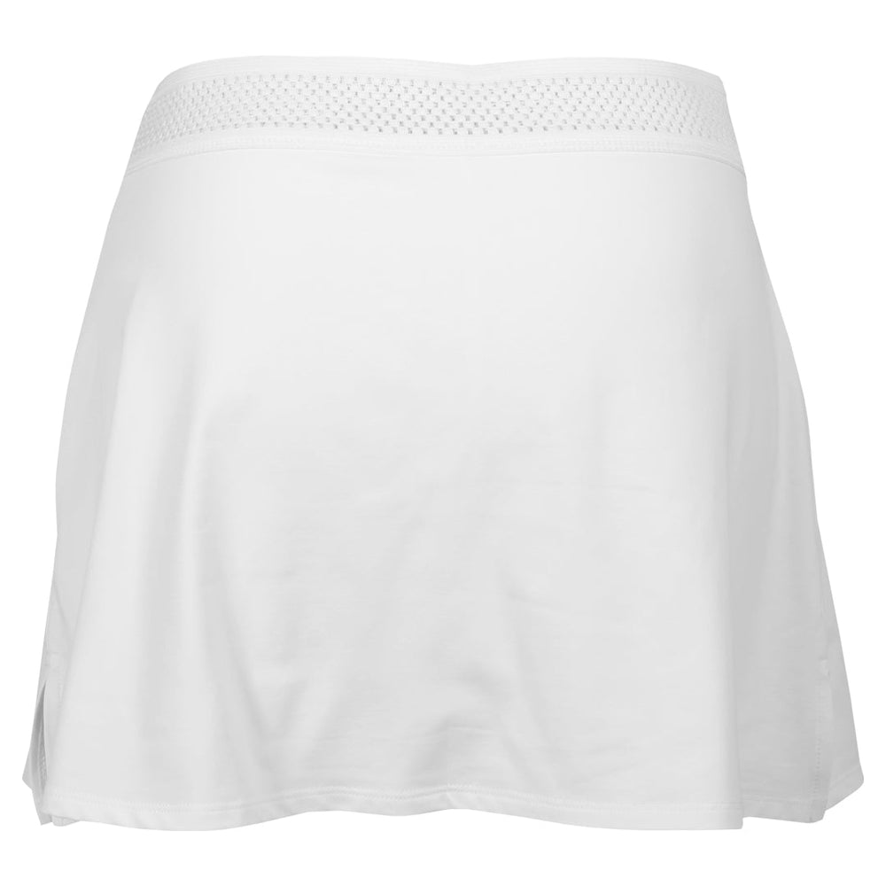 Fitted tennis skort to play your way on court. Sleek, feminine, and built for performance, the Trés Blanc 14" White Tennis Skort is a refined take on a court essential. Designed in crisp white, it features a slightly flared A-line silhouette with subtle side slits for enhanced movement and a flattering fit. The wide, soft waistband is crafted in a lined Trellis Trim for added stretch, sweat-proof comfort, and elegant texture—keeping you supported and stylish through every match. Built-in white shorties provide breathable coverage, so you can move with ease and confidence. Crafted with Sofibella’s premium performance fabric, this skort delivers UV protection (50+ UPF), four-way stretch, moisture-wicking, quick-drying, and pilling-resistant properties. Whether you're competing or styling it off the court, the Trés Blanc White Tennis Skort offers a clean, elevated look that moves as beautifully as it wears.