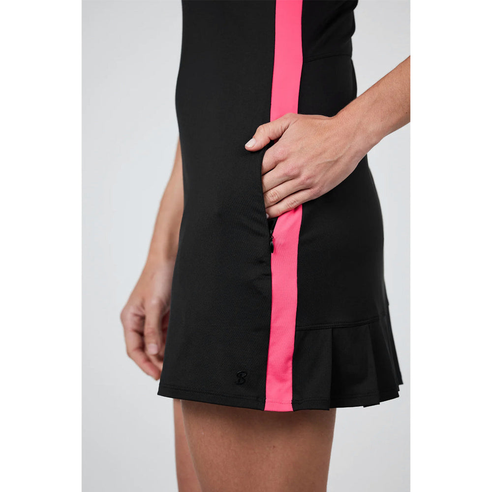 Sleek and elegant, this is a great tennis dress. Graceful, focused, and ready for play—this sleeveless polo golf dress delivers effortless energy with every swing. Tailored in a 35" length, it features a crisp white polo collar and Sofibella’s signature zipper for a clean, modern edge. A pleated back hem lends fluid movement, while discreet side zipper pockets add sleek functionality. Crafted from our high-performance fabric with four-way stretch, moisture-wicking comfort, UV protection, and pilling resistance, this dress is designed to move beautifully—on the course and beyond.