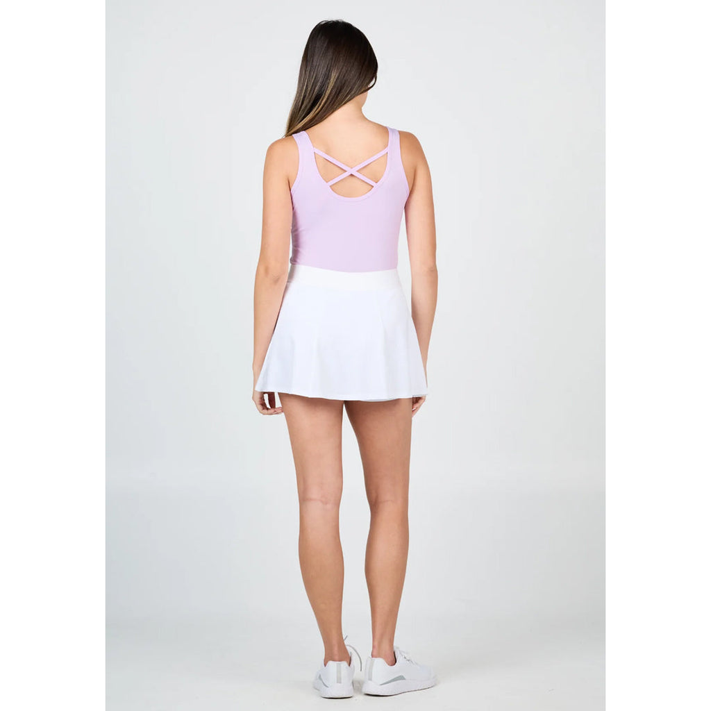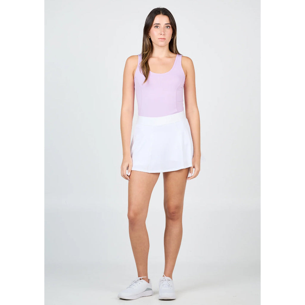 Elegant yet sporty skort in crisp white. A lightweight paneled skort with a Mono Stripe elastic accent waistband and 50 UPF sun protection. Designed for effortless movement and all-day comfort, it blends sporty performance with modern, flattering style.