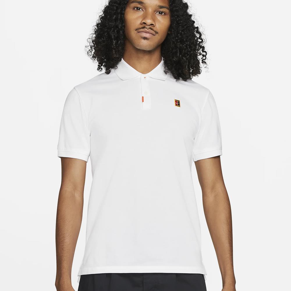 Classic design, get on any court in style! Every detail, from its innovative, sweat-wicking fabric to the hints of orange that nod to Nike's original shoe box, has been thoughtfully crafted to meet the needs of the everyday you. The result is a street-ready style that looks as at home on the course or court as it does everywhere else. To top it off, this product is made from 100% sustainable materials—using a blend of both recycled polyester and organic cotton fibres. Premium details, from the pique fabric to the breathable design, create street-ready style that's also built for the course or court. An orange label on the placket, orange thread on the top button and a facsimile of the original Nike shoe box under the back collar infuse your look with heritage style. Breathable knit fabric is crafted from a blend of organic cotton and recycled polyester. Nike Dri-FIT Technology moves sweat away from your skin for quicker evaporation, helping you stay dry and comfortable. History of Orange: In 1971, Nike co-founder Phil Knight wanted to distinguish his new company from the rest of the competition. When it came to packaging, he chose orange—it stood out, looked great on cardboard and made a clear distinction from those blue boxes. So when Nike cracked the market with its first shoe, a football boot called 'the Nike', the shoe box was orange.