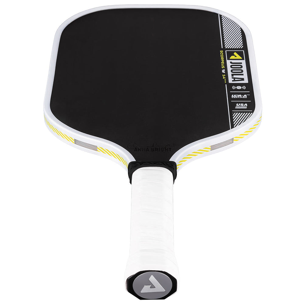 Smash and sting the opponent. The Scorpeus Pro IV 14mm pickleball paddle, powered by TechFlex Power (TFP) technology, delivers a new standard in balance and responsiveness. By maximizing paddle width over length, the Scorpeus Pro IV shape becomes easier to maneuver, allowing your instincts to take over during fast-paced hand battles. Advanced weight distribution throughout the paddle helps reduce fatigue and offers real-time feedback to let you adapt to the flow of the game. Building on the power and feel of JOOLA's innovative Propulsion Core, this paddle redefines consistency and performance every time you take to the court. All Pro IV paddles are USAP PBCoR 43 certified and UPA-A pro certified.