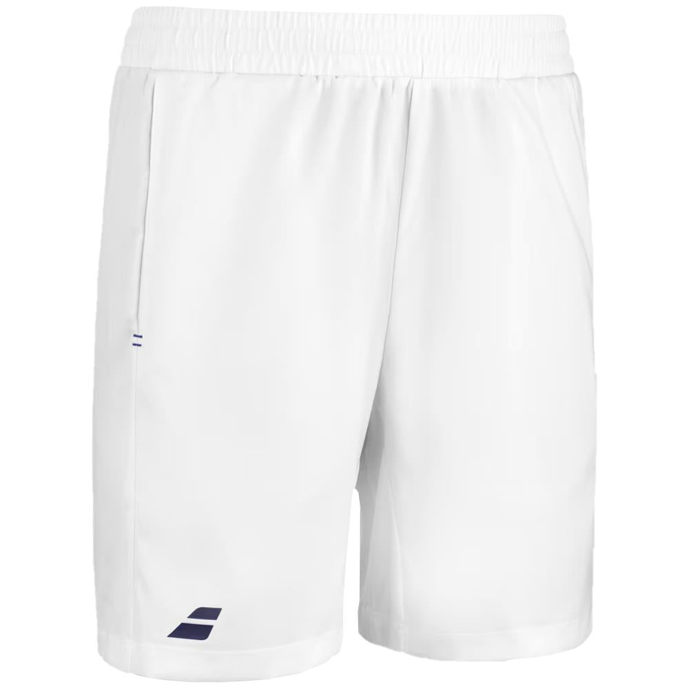 Classic white tennis shorts for boys. Play Garçon Shorts for boys, made from a new, naturally elastic recycled polyester fabric, are perfect for your child. Available in classic colors, they match easily with all outfits and are perfect for wearing on any court. There are two side pockets for tennis balls, and the adjustable stretch waistband with drawstring is perfect for children of all sizes.