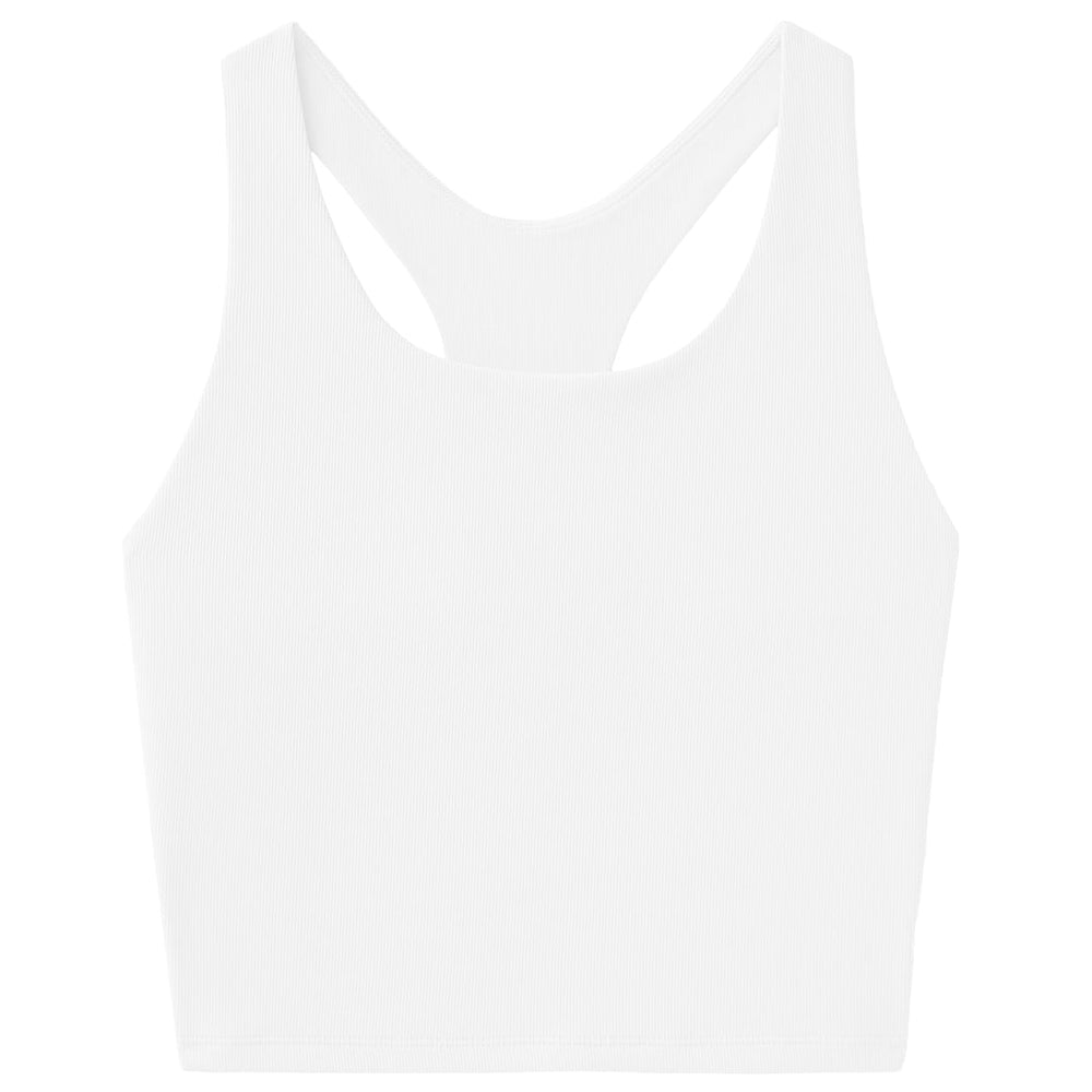Classic tennis style in white, on a top that helps you stay comfy and supported. Stay cool and stylish on the court with this longline racerback bra top, designed for optimal support and performance. The ribbed knit fabric offers a stretchy, body-hugging fit, while the racerback design and scoop-neck cut allow for a full range of motion. With a contrasting F-Box logo, this top is perfect for high-intensity matches and everyday training.