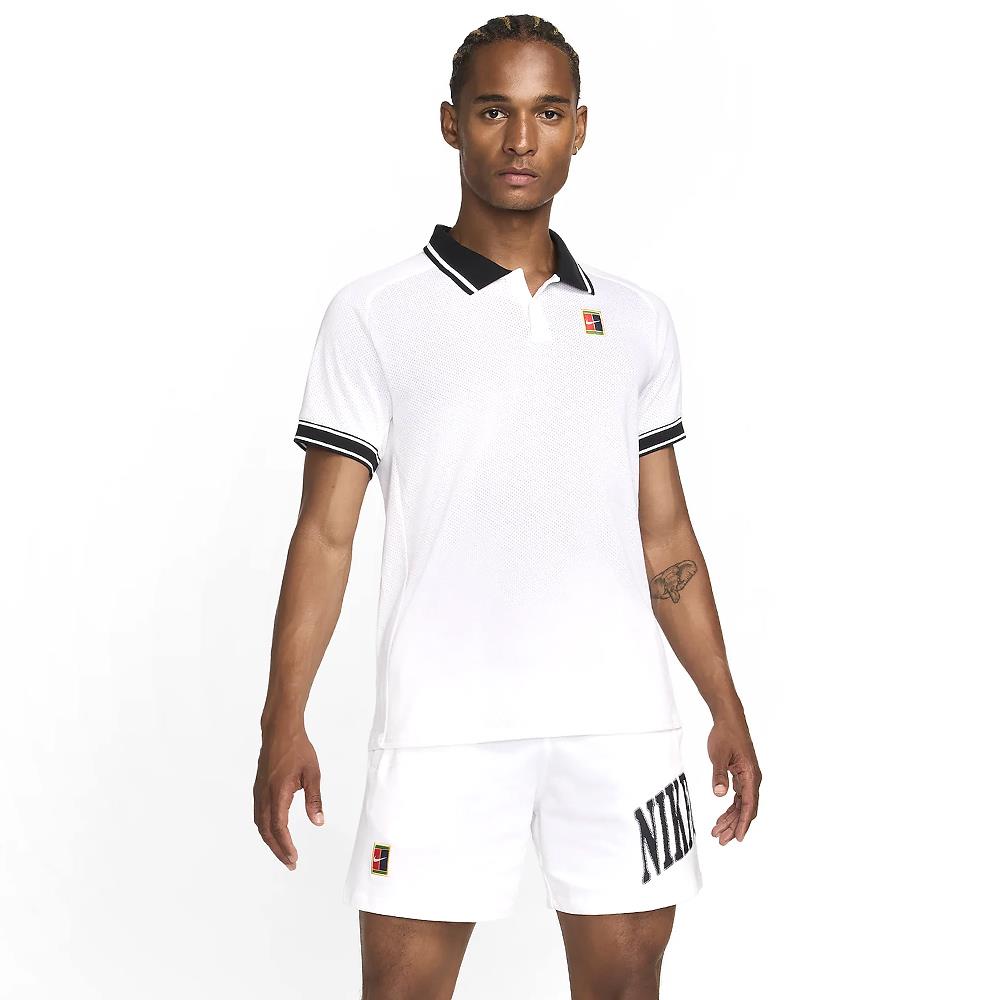 Classic style in a mostly white polo. With a slim fit and contrasting knit collar, this NikeCourt polo has a classic look that's at home on the court and beyond. The knit fabric offers lightweight breathabilit