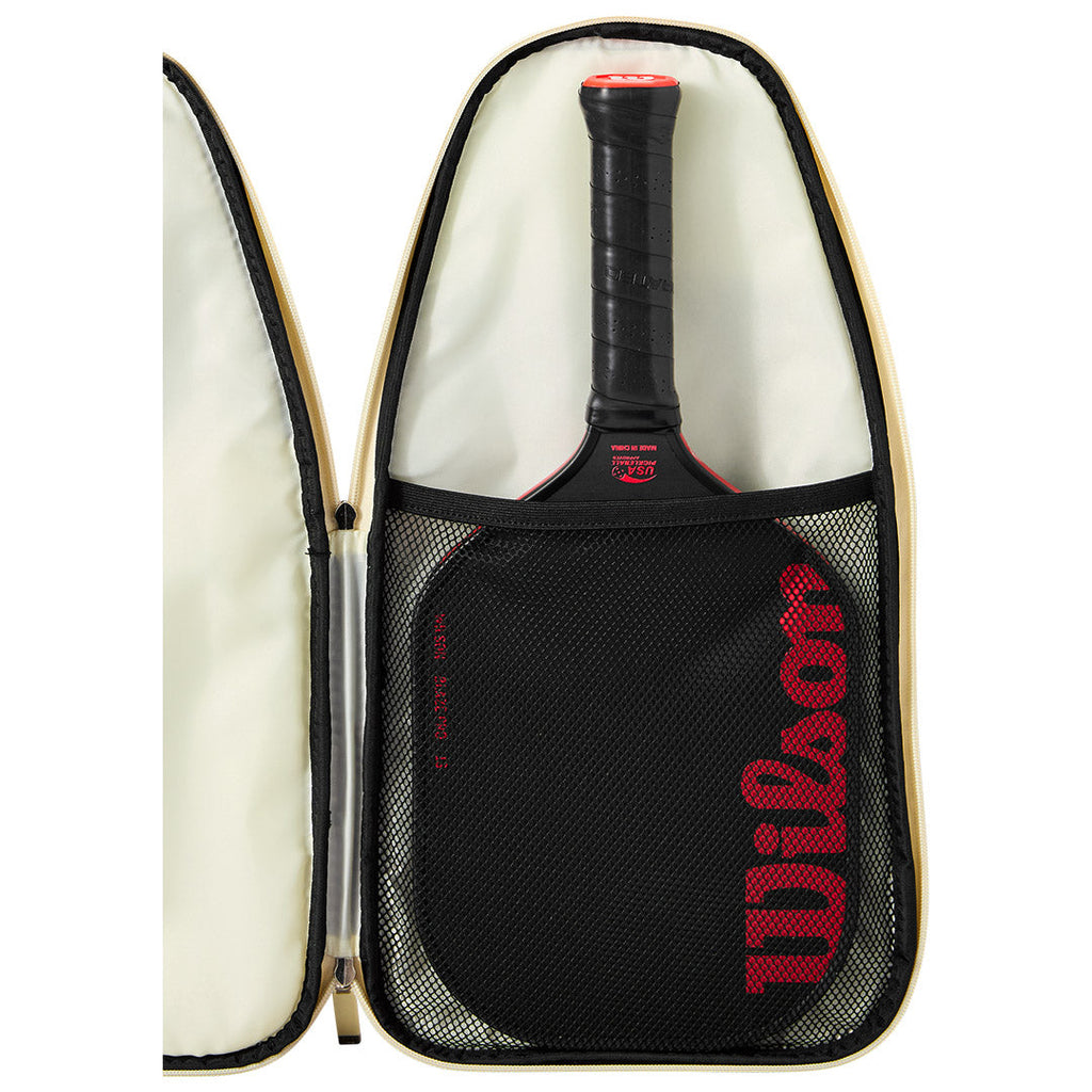 Simple yet effective cover for pickleball paddles. Treat your paddle right. The Wilson Pickleball Cover helps keep it looking like new with a durable design that stands up to wear and tear. It offers space for one paddle plus a few other essentials like a wallet and post-match snacks.