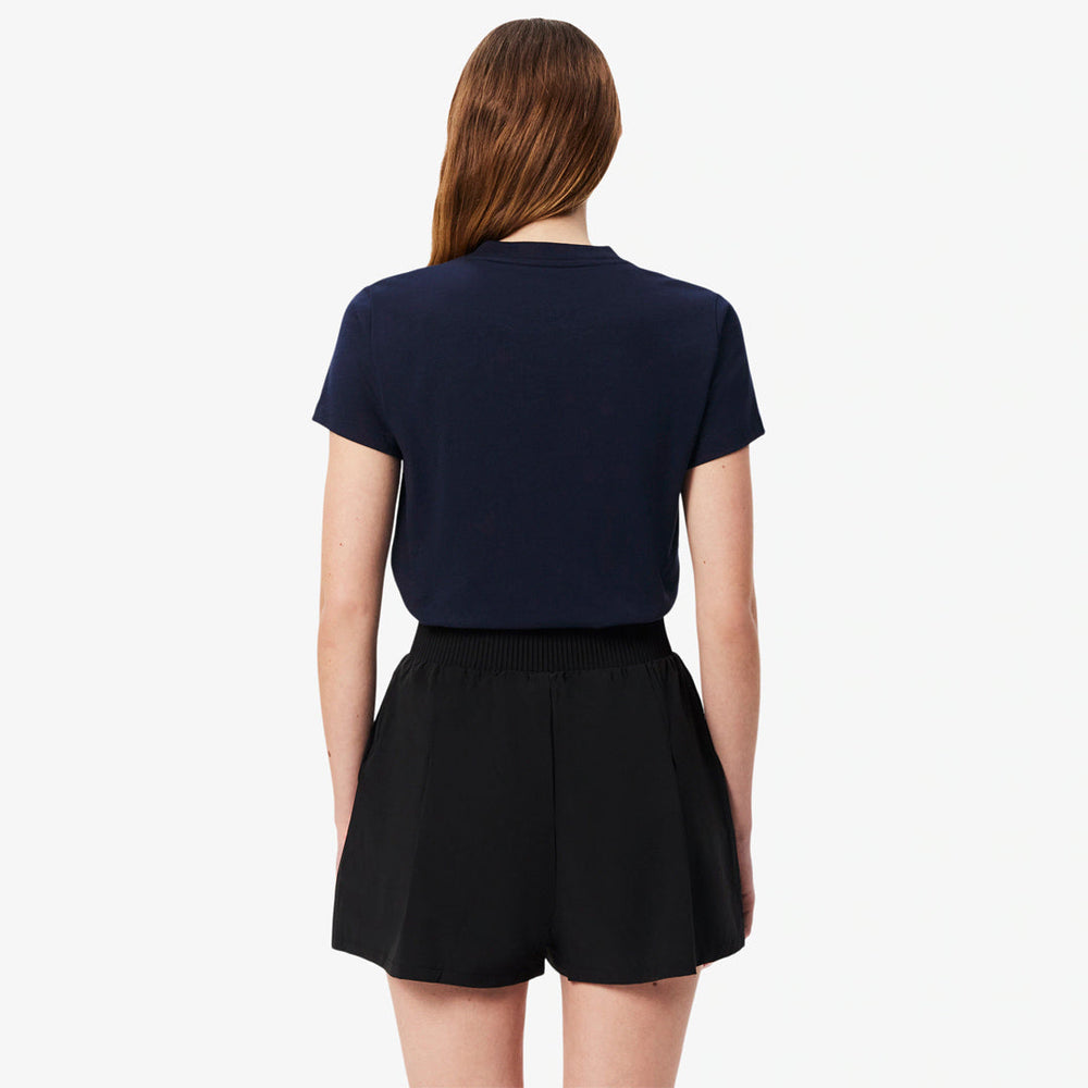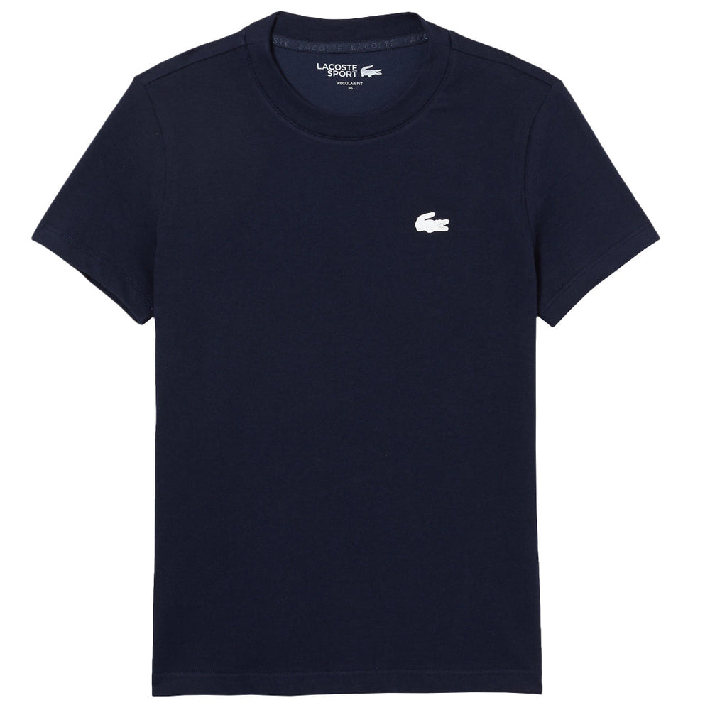 Classic navy t shirt with a white Lacoste logo. A T-shirt designed for intense exercise by Lacoste, sporting experts since 1933. The technical jersey fabric offers comfort and freedom of movement, with Ultra Dry technology to wick away perspiration. With an elegant design to ensure you stay stylish on any pitch or field.