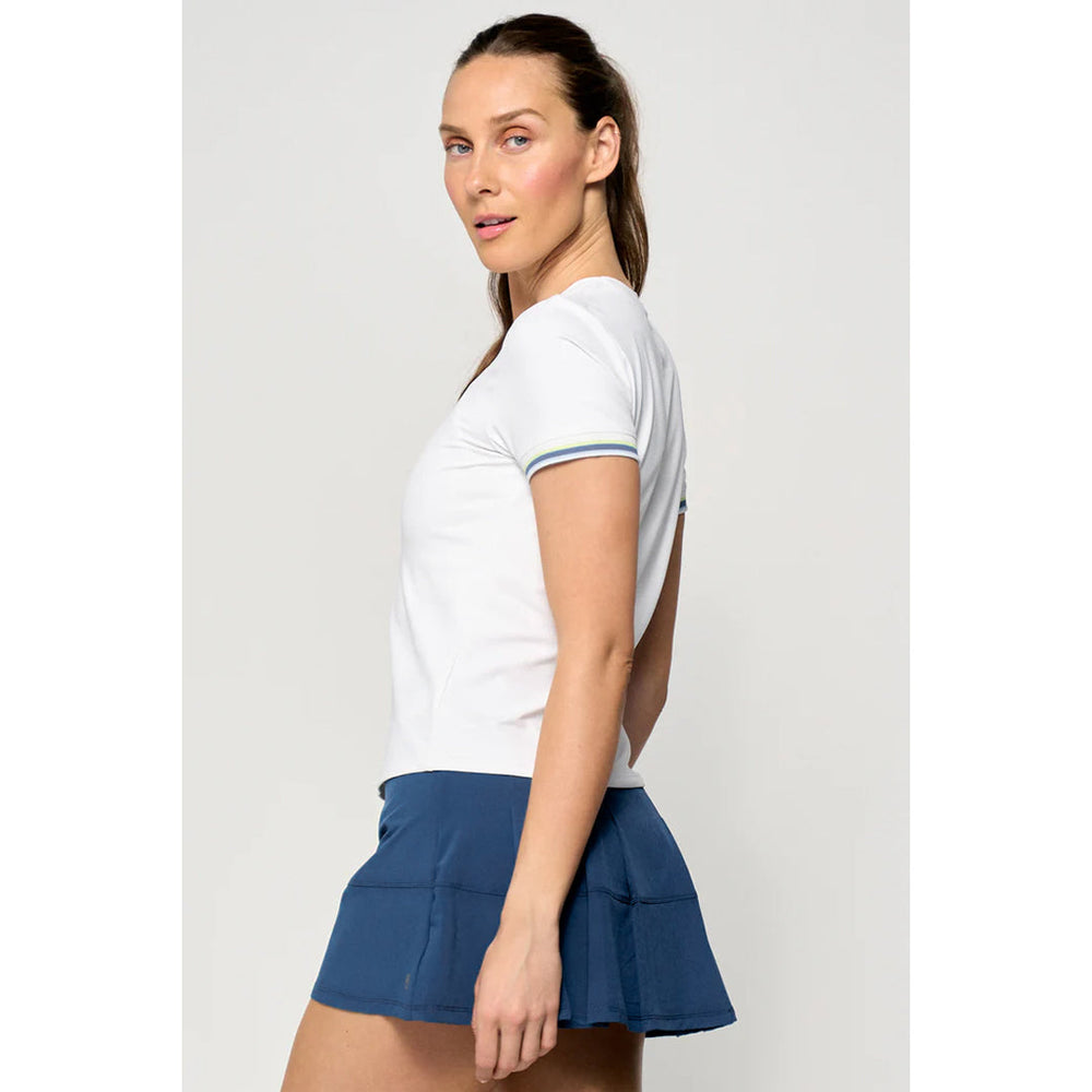 Sporty and athletic fitting tee. This crewneck tee features striped rib detailing at the armholes for a sporty accent. With a 21" length and body-skimming, classic fit, it offers a clean, versatile look perfect for everyday wear.