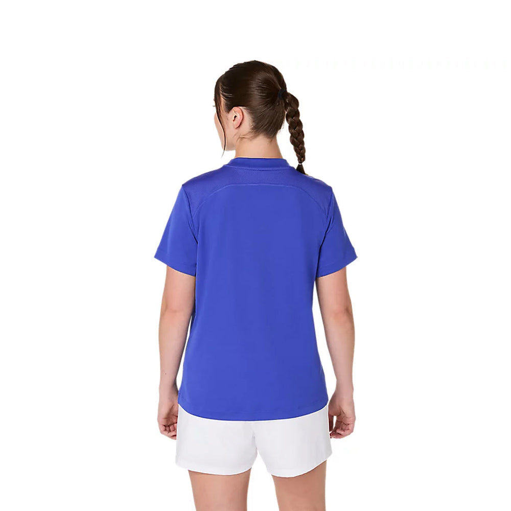 Dark blue tee, perfect for intense tennis matches thanks to its ventilation. The COURT SHORT SLEEVE TOP features a classic design that's timeless for a variety of matches and practices. It's designed with a classic tennis material and manages moisture with its dry and soft fabric for a comfortable top.