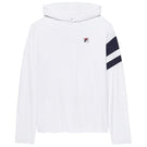 Comfortable and warm hoodie in white and fila navy. Layer up on those cooler days and get out there. When the temps and conditions switch it up, so can you, thanks to this lightweight hoodie. Featuring striped shoulder details, 50+ UV protection, plus, it's made with anti-odor and sweat-wicking materials so you can play on and not sweat the small stuff.