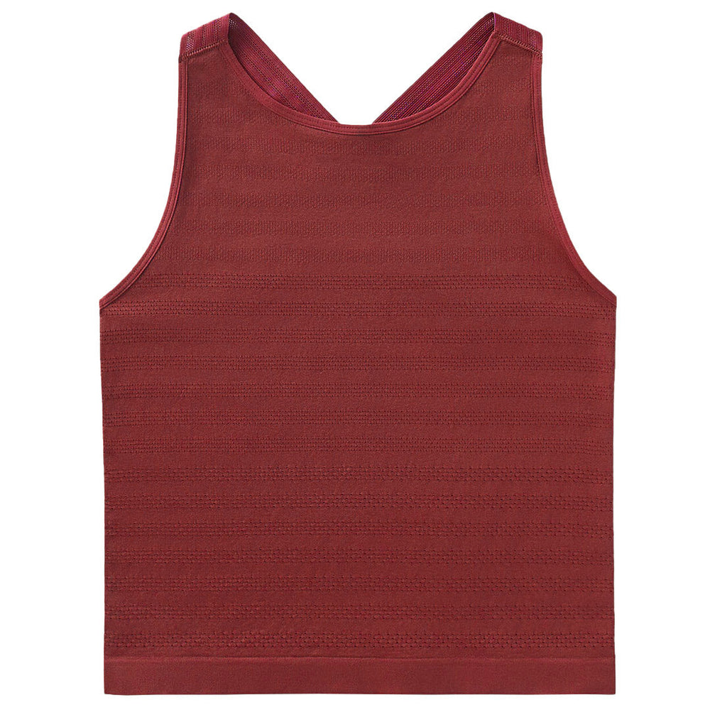 Dark red top to show your style. Redefine your on-court style with this innovative seamless tank, designed for peak performance and worn by Fila’s top tennis athletes. The breathable, sweat-wicking knit fabric and horizontal textured detailing provide optimal ventilation to keep you cool and dry, while the seamless construction ensures a comfortable, second-skin fit. The bold contrast F-Box logo and signature heritage stripe detailing on the straps make a statement wherever you go.