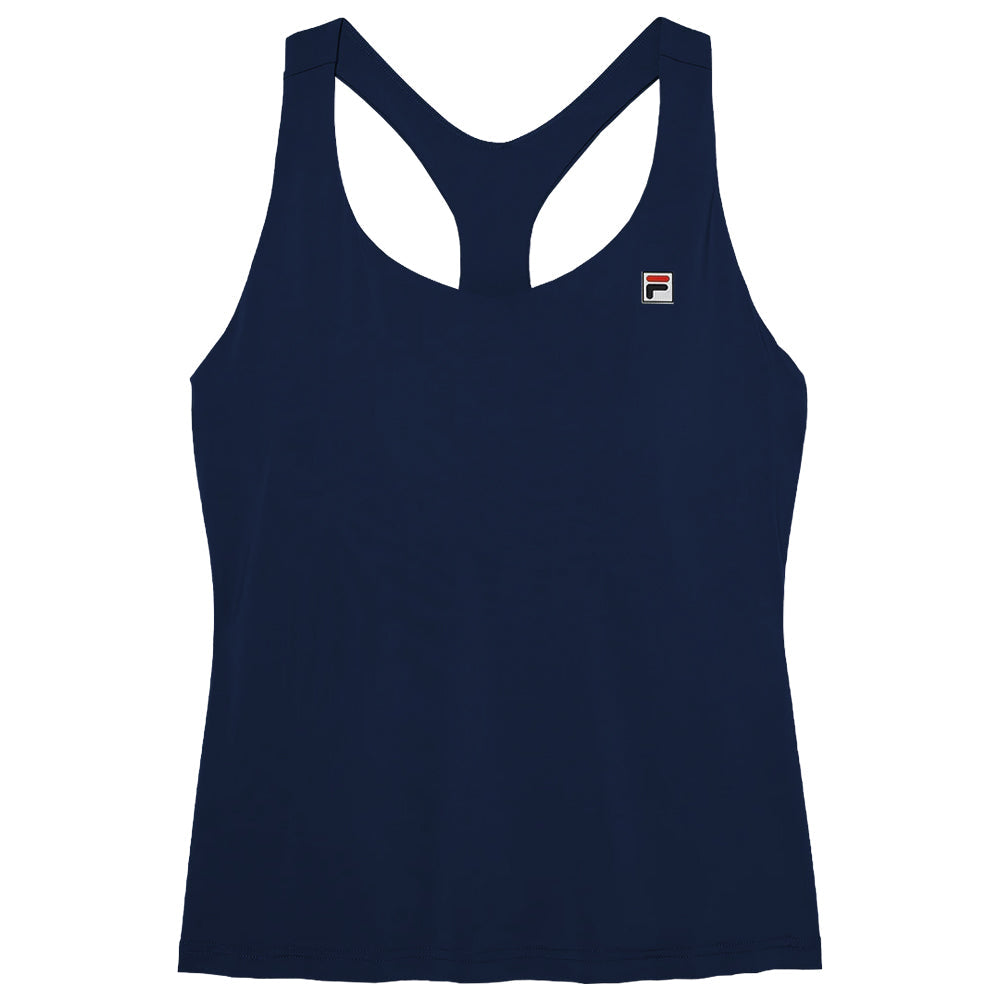 Flattering and supportive navy tank. Whether you're practicing your groundstrokes or competing in a tournament, the FILA Women's Tennis Racerback Top is the perfect choice for players who demand both style and performance. Upgrade your on-court look and feel and experience the difference with FILA.