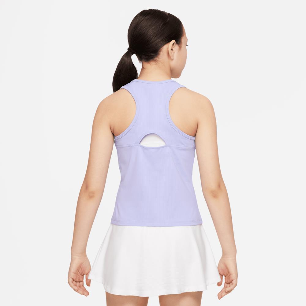 Comfortable and stylish. Soft and stretchy, the NikeCourt Dri-FIT Victory Tank is a court essential that wicks sweat so you can stay focused on your match. This product is made from at least 75% recycled polyester fibres. Dri-FIT Technology helps keep you dry and comfortable. Knit fabric feels soft, stretchy and breathable. Cut-out at the back gives you breathability in this high-heat area.
